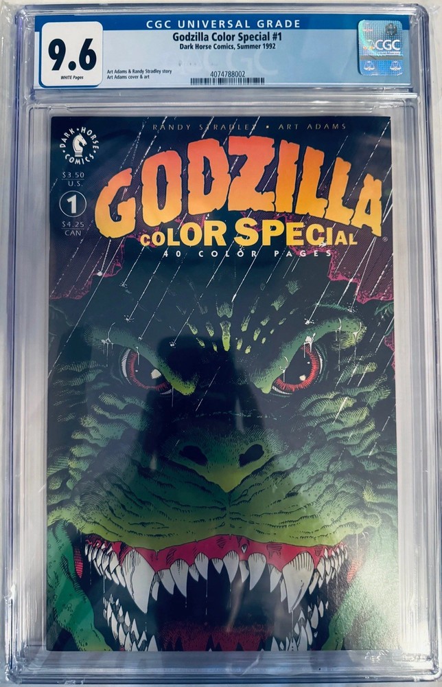 VegasComicsCom Step back into the golden age of Dark Horse Comics with a true gem: the Godzilla Color Special #1 from 1992, impeccably graded CGC 9.6. This isn't just a comic; it's a preserved piece of pop culture history, a testament to the enduring legacy of the King of the Monsters. Imagine owning a comic from over 30 years ago that looks like it just rolled off the printing press. This CGC 9.6 grade signifies near-perfect condition, a testament to its careful preservation. The vibrant colors, sharp corners, and pristine pages are a sight to behold, showcasing the artistry of the era in its full glory. Why this CGC 9.6 Godzilla Color Special #1 is a collector's dream: Exceptional Grade: CGC 9.6 is a highly coveted grade, indicating near-mint condition and exceptional preservation. Dark Horse Era: This comic represents a significant period in Godzilla's comic book history, a time when Dark Horse brought its unique vision to the kaiju legend. Vintage Collectible: A 1992 comic in this condition is a rare find, making it a valuable addition to any serious collection. Investment Potential: High-grade vintage comics have proven to be a solid investment, with their value often increasing over time. Nostalgic Appeal: Relive the excitement of the 90s with this classic Godzilla comic, a piece of nostalgia that will resonate with fans of all ages. Visual Spectacle: The color special format allows for a rich and immersive experience, showcasing Godzilla's grandeur in stunning detail. This Godzilla Color Special #1 - Dark Horse Comics (1992) - CGC 9.6 is more than just a comic; it's a time capsule, a piece of art, and a sound investment. Don't miss your chance to own this museum-grade piece of Godzilla history. Secure this pristine piece of Godzilla's legacy today!