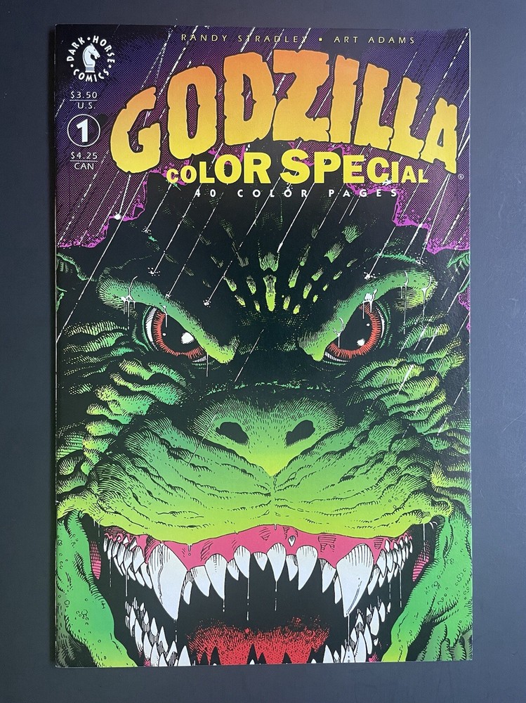 This one-of-a-kind comic book features the iconic monster Godzilla, as illustrated by the talented artist Arthur Adams along with Randy Stradley. The beautifully crafted cover and interiors are in excellent condition, with no signs of wear and tear. The first printing of this 1992 issue is perfect for any collector or fan of US Comics and modern-age era graphic novels. The comic book comes boarded and is a single unit for sale. The Godzilla Color Special 1 by Dark Horse Comics is a vintage gem that is sure to impress any general audience with its amazing artwork and captivating storyline. The comic book is written in English, and is not personalized or inscribed. This high-quality edition is a must-have for all comic book enthusiasts.