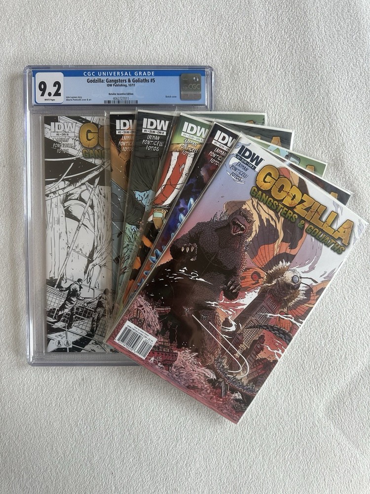 Godzilla: Gangsters and Goliaths 6 book lot. You will receive 5 raw comics and 1 broken CGC 9.2 Slab. Raw books will come bagged and boarded. Included in Lot: Godzilla: Gangsters and Goliaths; #1 CVR B #2 CVR A #2 CVR B #3 CVR A #3 CVR B #5 CVR RI- CGC 9.2 Damaged Slab> See pictures Please see pictures for best judgement on condition. Item pictured is the item you will receive. Items will be packaged with the utmost care and protection to ensure safe arrival to your location. Enjoy FREE SHIPPING! I'm happy to answer any questions you may have about the item! DISCLAIMER Product Condition: As a seller on eBay, I am committed to providing accurate and detailed information about the condition of the products I offer. I will clearly state whether the item is new, used, refurbished, or open box. Any significant defects, damages, or wear and tear will be accurately described to the best of my knowledge. Please review the product description and accompanying photos before making a purchase. Authenticity: I guarantee that all the products I sell on eBay are authentic and genuine, unless explicitly mentioned otherwise. I do not engage in the sale of counterfeit, replica, or unauthorized items. If you have any concerns regarding the authenticity of a product, please contact me, and I will address your questions promptly Item Packaging: The packaging may vary depending on type of item purchased. Items will be packaged the utmost care and protection to ensure safe arrival to your destination. Enjoy free shipping unless specified. Pricing and Availability: I strive to provide competitive prices and accurate information about product availability. However, pricing errors or unforeseen circumstances may occur. In such cases, I reserve the right to cancel an order, provide a refund, or offer an alternative solution. I will communicate any pricing or availability issues promptly and work towards a satisfactory resolution. Communication and Customer Support: I value open and honest communication with my customers. If you have any questions, concerns, or issues regarding a product or transaction, please contact me through the eBay messaging system. I will make every effort to respond promptly and address your queries to the best of my ability. Legal Compliance: I adhere to all applicable laws, regulations, and eBay policies regarding the sale of products. I ensure that my listings comply with intellectual property rights, licensing requirements, and other legal obligations. If you believe any of my listings infringe upon your rights or violate any laws, please notify me immediately.