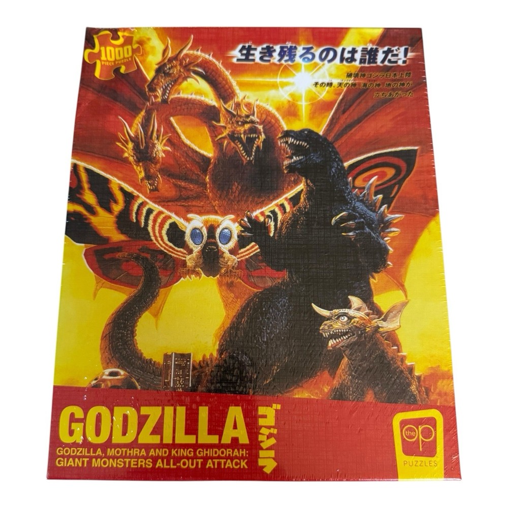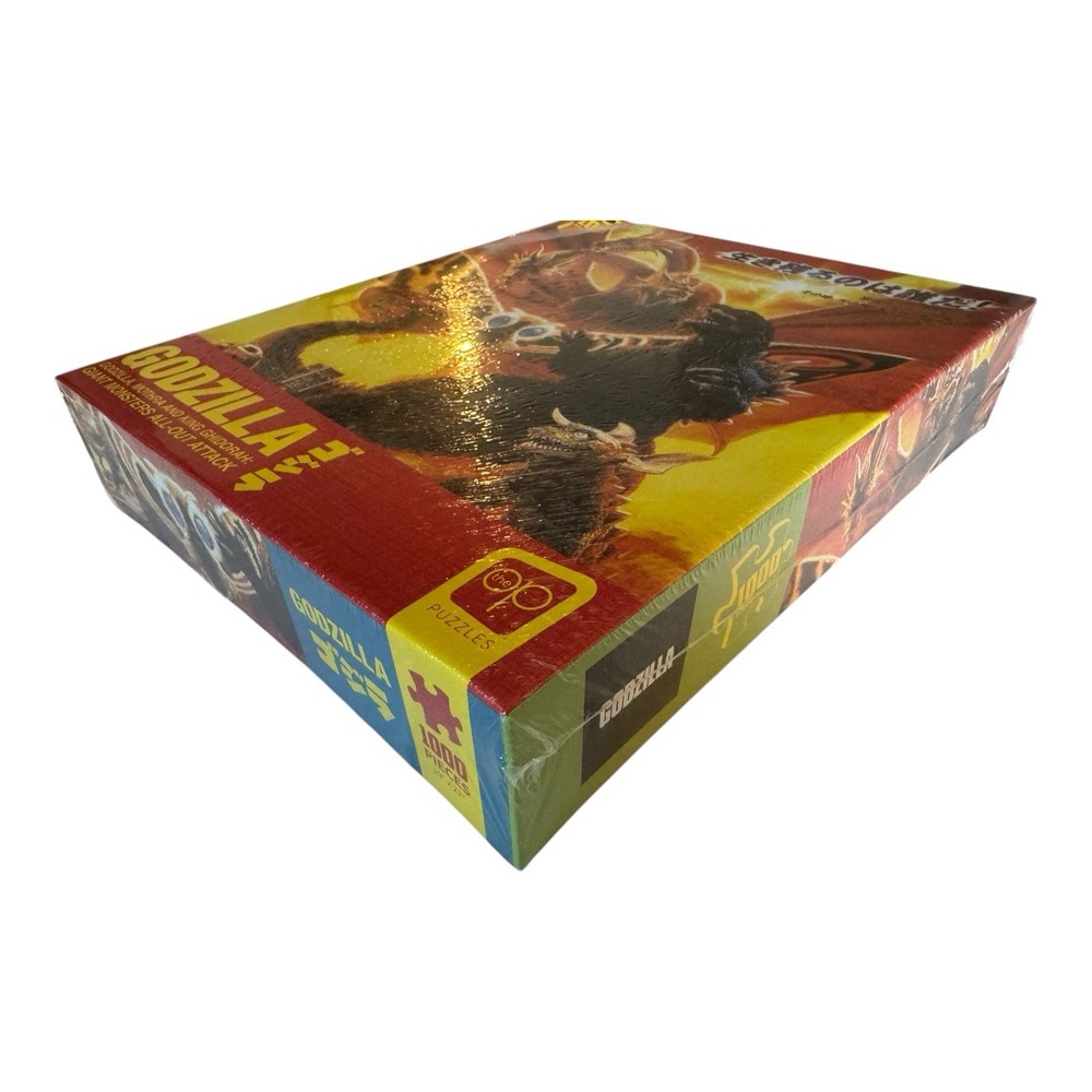 Selling as used because box has wear, puzzle is sealed. The Godzilla Giant Monsters All-Out Attack 1000 Piece Jigsaw Puzzle is a challenging and entertaining game suitable for adults and teens. With a colorful design featuring Godzilla and other giant monsters, this puzzle brings to life the epic battles of the popular kaiju series. Made from mixed materials, this puzzle is sure to provide hours of fun and satisfaction upon completion. Recommended for ages 12-18, this puzzle is a great choice for fans of Godzilla and contemporary jigsaw puzzles.