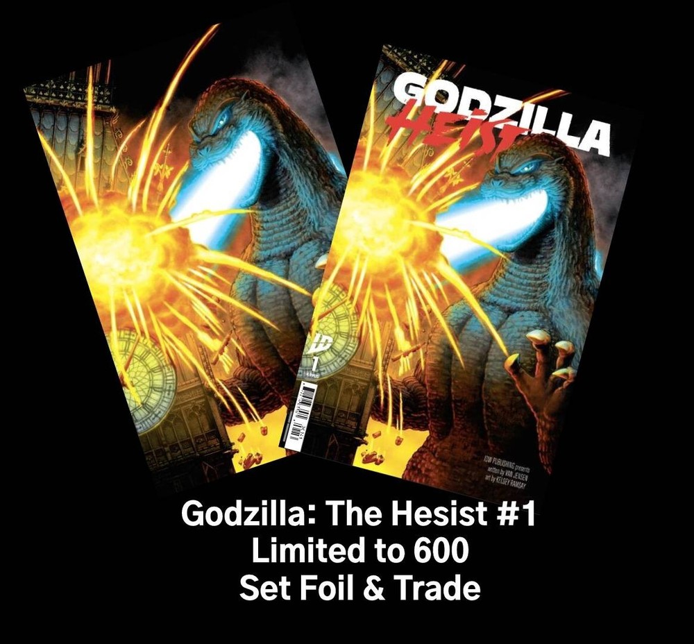 Trade is Limited to 600 Foil is Limited to 600 What if you could predict when and where Godzilla would appear? What if you knew of the perfect opportunity to pull off the heist of the century? Jai is a young man who knows two things: A heist needs a good distraction, and there’s no distraction like Godzilla. So, when Jai discovers Godzilla responds to specific energy signals he can send into the atmosphere, he creates the perfect opportunity to stage high-profile heists in the middle of Godzilla attacks. But these heists put Jai on the radar of some very dangerous men, men who want Jai to work with them to pull off the most dangerous job the world has ever seen. Join the superstar crew of Van Jensen (The Flash, Green Lantern Corps, Godfall) and Kelsey Ramsay (Doctor Who: The Fifteenth Doctor, Dark Spaces: Good Deeds) for one last job in Godzilla: Heist . On all Order’s we Can't Guarantee 9.8 but we will try our Best to get You a 9.8 Copy We can only Guarantee a 9.2 Copy – Read Below to see what a 9.2 is Near mint to Near Mint - / 9.4 TO 9.2 This book is an excellent copy with great eye appeal. It is vibrant with supple pages. The spine may have a couple of very small stress lines that break color. Minor creasing. The spine is almost completely flat. The cover is relatively flat with almost minimal surface wear and the cover inks are generally bright with medium to high reflectivity. The staples may show some discoloration, but it's not too noticeable on first glance. The inside pages and covers usually will be off-white/white, but can be cream/off-white with the absence of other defects. Shipping Costs: First Comic is $5.99, Each Additional Comic will be $1.25 Quality : What you see is Exactly what you will be Getting - "All Comics Come Bagged and Boarded" Please Judge Grading for your Self - Lots of Pictures are Taken so you can See If its not in the Picture is not going to be mailed - "All Comics Come Bagged and Boarded" Returns: No Returns, Exchanges or Refunds