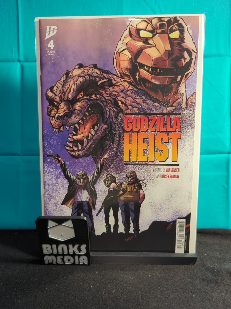 The Godzilla: Heist #4 Variant B (Tunica Movie Poster Variant) is a limited edition comic book published by IDW Publishing. This variant issue features the iconic character Godzilla and is part of the US Comics tradition. The Tunica Movie Poster Variant adds a unique twist to the comic, making it a sought-after collectible for fans of the Godzilla series. With its exclusive artwork and tie-in to the movie poster, this issue is a must-have for any comic book collector or Godzilla enthusiast.