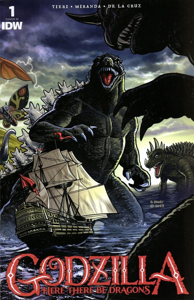 GODZILLA HERE THERE BE DRAGONS #1 CVR D 25 COPY INCENTIVE DEWEY IDW (W) Tieri, Frank (A) Inaki Miranda (CA) Benjamin Dewey In the 1500s, before humanity had successfully traveled the entire globe, it was believed that monsters ruled the oceans just beyond the horizon. "Here there be dragons..." was written on maps to denote the areas people dared not go. That is, until Sir Francis Drake circumnavigated the seas, visiting foreign lands and collecting treasure. That's what history tells us, at least, but history does not have the full tale. Monsters did lurk yonder, living on an island that still doesn't appear on any map, and among them was the king of them all...Godzilla! From Frank Tieri and Inaki Miranda, the incredible team behind Old Lady Harley, comes a Godzilla adventure like no other. Slight gutte/roll parallel to spine, crimp to top left corner Buying multiple items? Be sure to "Request total from seller" from your cart before paying to receive an adjusted invoice with reduced total S&H! Powered by SixBit's eCommerce Solution