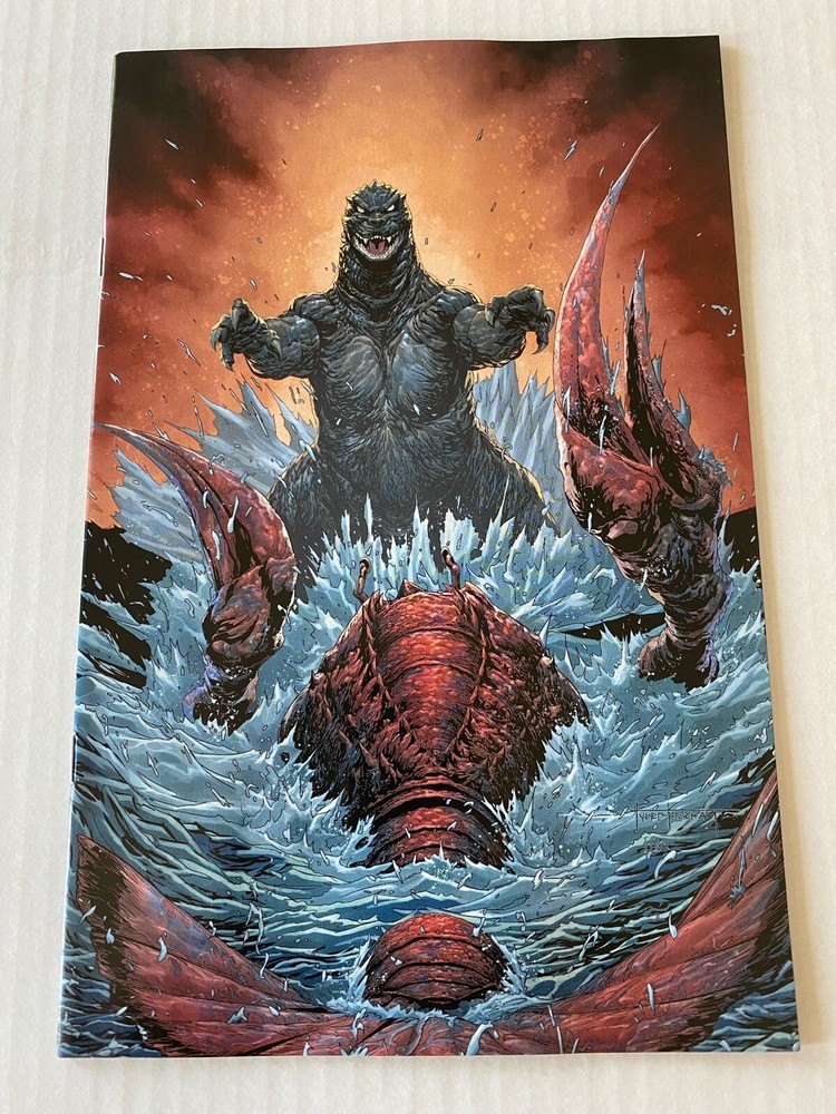 Limited 1 for 10 Retailer Incentive Variant Cover. Written by Frank Tieri. Art by Inaki Miranda. Cover by Tyler Kirkham. AVAST, MATEYS! As One-Eyed Henry Hull continues his bizarre tale, Sir Francis Drake and his men find themselves surrounded by monsters, both human and kaiju! While the crew of the Golden Hind have taken terrible losses from giant bats and colossal sea turtles, they’ve yet to face the REAL dragon. But they might not need to worry about Godzilla if Ebirah slays the King of Monster Island—or Drake and his crew—first! Cover price $3.99.