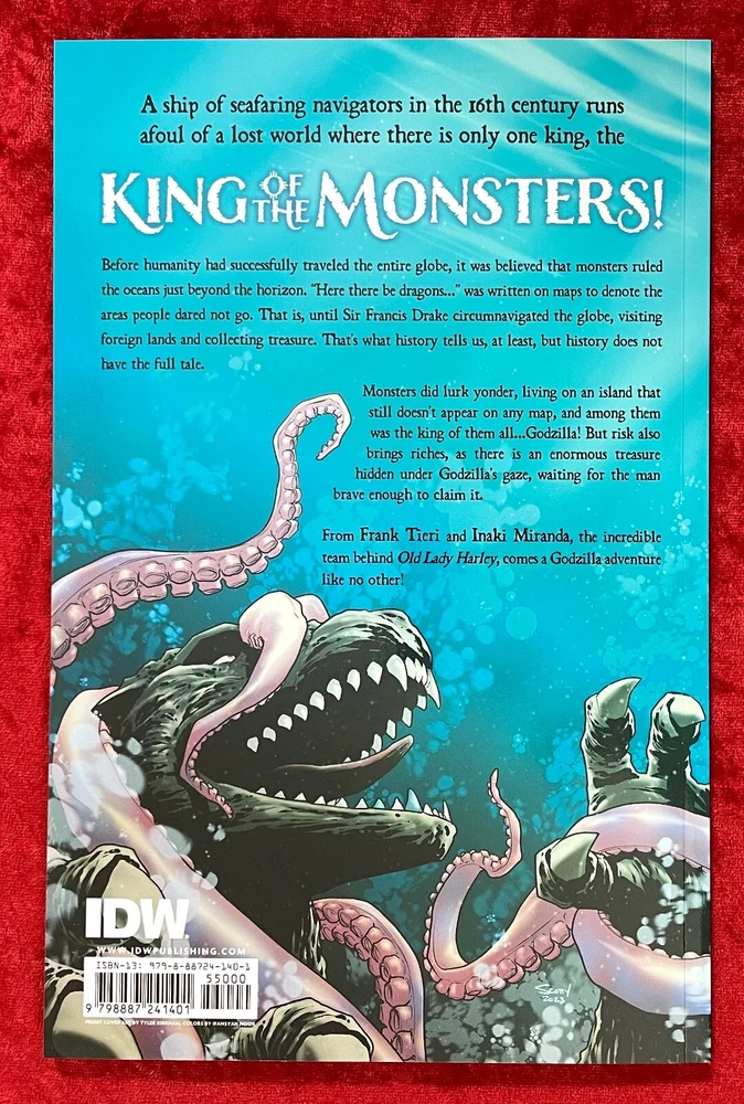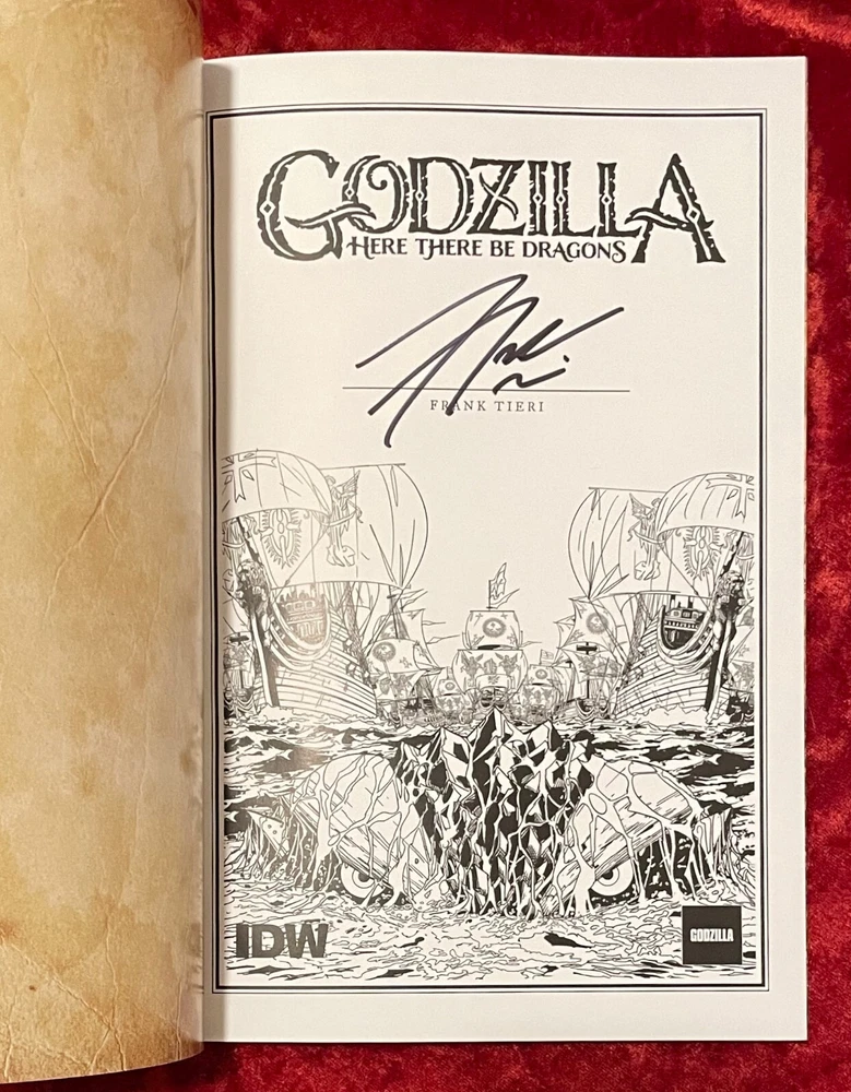 Godzilla: Here There Be Dragons Trade Paperback online signed edition, IDW, 2024 Writer: Frank Tieri; Artist: Inaki Miranda Publisher information: " The seas roar, the earth trembles, and an ancient legend emerges from the depths... Here There be Monsters! A voyage into the heart of darkness where Godzilla , the titan of legends, rules supreme. Created by the visionary Frank Tieri and Inaki Miranda, this saga redefines the boundaries of adventure and fear. Limited Release Alert: Only 100 Autographed Copies! With only 100 in existence, each book is a rarity as elusive as the mythical islands it explores. Dive Into The Abyss: Journey with ancient navigators as they encounter the ultimate ruler of monsters, revealing a hidden chapter of our world. Capture your piece of history before it vanishes into the mists of time. This isn’t just a book; it's your passport to a realm where the king of monsters reigns." The book does not specify that there were only 100 autographed copies, and they are not numbered. Refer to photos for condition, feel free to ask questions I pack all comics in bags and boards, sandwiched between cardboard, and then they ship in a Gemini mailer (oversize comics or large orders may use alternate shipping container).