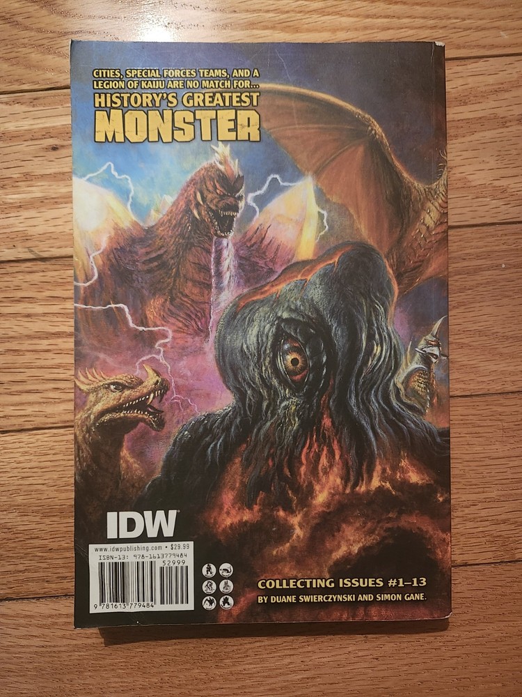 The "Godzilla: History's Greatest Monster" Graphic Novel from 2014 is part of the series published by IDW Publishing. This trade paperback format features the iconic character Godzilla within the monster genre of US Comics. Written in English, it belongs to the Modern Age era of comics and is a collectible item for fans of Godzilla and comic book enthusiasts alike. The graphic novel delves into Godzilla's legacy as one of history's greatest monsters, offering a unique perspective on the beloved creature's adventures.