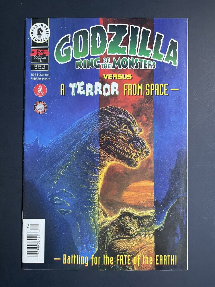 This Godzilla King Of The Monsters 16 Newsstand comic book from Dark Horse Comics features the iconic monster in a thrilling storyline titled "Terror From Space". The single issue format is perfect for collectors and fans of the Monsterverse universe. Bob Eggleton's cover art is stunning and captures the essence of the character. The comic book is from the Modern Age (1992-Now) era and is a must-have for any US Comics enthusiast. The story title is "Terror From Space" and it is part of the Godzilla series. The issue number is 16 and it is a variant type newsstand edition. This collectible item is a perfect addition to any Comic Books & Memorabilia collection.