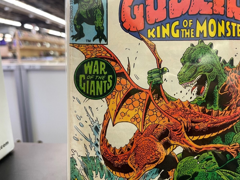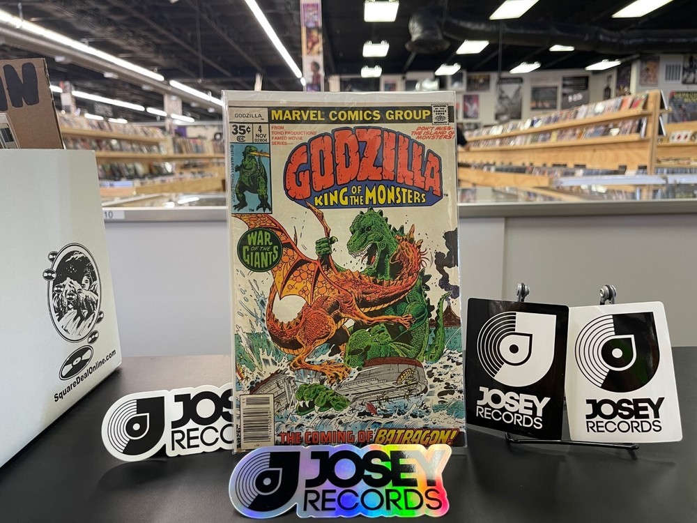 Godzilla King Of The Monsters #4 Marvel Comics 1977 (War Of The Giants) Batragon Godzilla King Of The Monsters #4 Marvel Comics 1977 (War Of The Giants) Batragon Great collectible comic! For more cool stuff look up us at Josey Records (website or IG). Original 1977 Godzilla comic from The Marvel Universe. The wonderful art was made by Herb Trimpe and the editor in chief Archie Goodwin. A strange monster that is a fusion between a bat and a dragon (dubbed Batragon) has been attacking oil tankers off the Pacific coast for its master Dr. Demonicus who seeks to use the oil in his operations. However this recent attack is interrupted when Godzilla arrives to attack the monster, bringing S.H.I.E.L.D.'s Godzilla Squad not far behind. Listing and template services provided by inkFrog