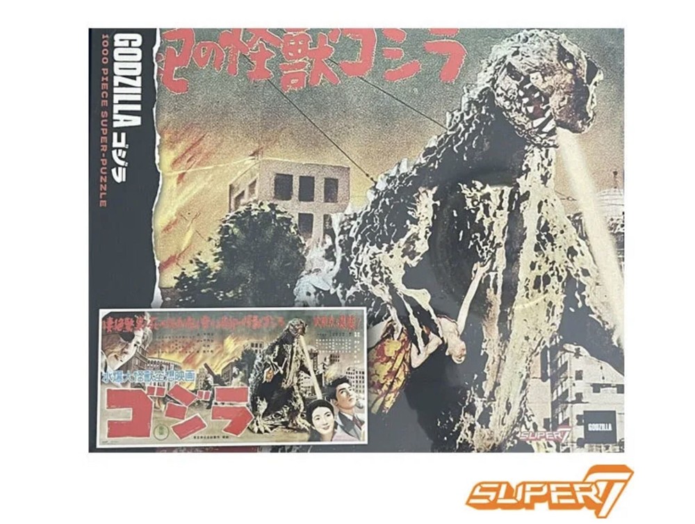 Get ready to bring the iconic Godzilla to life with this 1000-piece Super 7 puzzle. Celebrate the 1956 Japanese release of the King of the Monsters with this high-quality cardboard puzzle that features interlocking pieces for a seamless fit. With its vibrant multi-color design, this puzzle is perfect for movie and TV enthusiasts who want to add a bit of classic flare to their collection. Whether you're a fan of the Godzilla character family or simply enjoy the challenge of putting together jigsaw puzzles, this is the perfect addition to your collection.