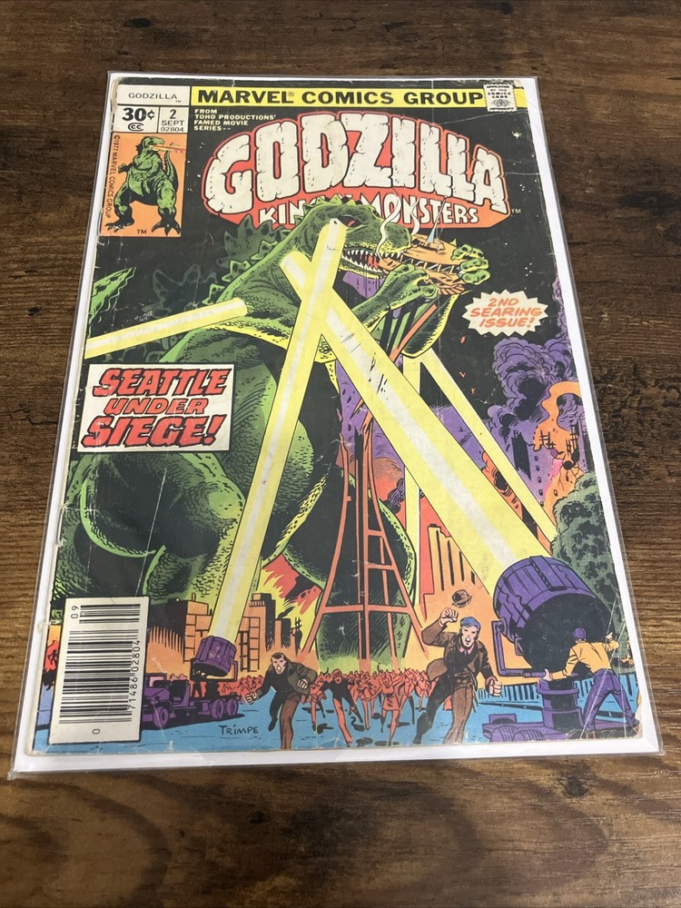 This is a rare and collectible comic book titled "Godzilla King of the Monsters #2" published by Marvel Comics Group in 1977. The comic book features the iconic monster Godzilla and belongs to the Bronze Age (1970-83) era of US Comics. It is a single issue comic book with an issue number of 2 and is part of the Godzilla series. The comic book is in its original form and is boarded for preservation. It is a 1st edition comic book that falls under the Action/Adventure, Horror & Sci-Fi, and Monster genres. The artist/writer of this comic book is King and it belongs to the Marvel Comics series. This comic book is a must-have for fans of Godzilla and collectors of vintage comic books.
