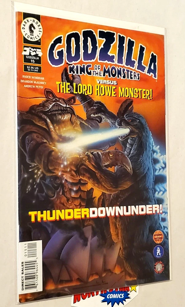 This is an auction for a Godzilla King of the Monsters #15 comic by Ryder Windham and Brandon McKinney. This comic book was published by Dark Horse Comics in 1996. This comic is unread and is in very good condition (see photos). It has been stored with an archival bag and board in our shop inventory since received from the distributor. All comics are newly bagged prior to shipping and mailed in comic specific mailer boxes. Domestic bidders - choose from USPS Ground Advantage or USPS Priority Mailing. International bidders - items will be shipped via eBay's International Shipping Program. Note: multiple items will be combined for the best possible shipping costs when using the shopping cart.