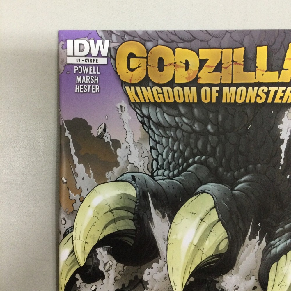 This listing is for the Godzilla Kingdom of Monsters #1 Retailer comic in the pictures. This has creases and other imperfections. I am not a grader please see pictures for condition. This comes in a bag and board.