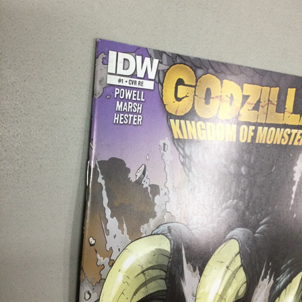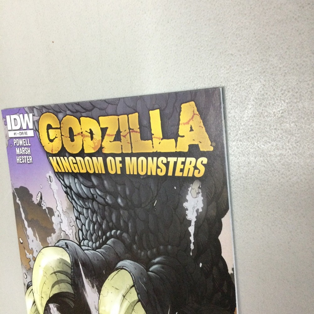This listing is for the Godzilla Kingdom of Monsters #1 Retailer comic in the pictures. This has creases, scuffing, and other imperfections. I am not a grader please see pictures for condition. This comes in a bag and board.