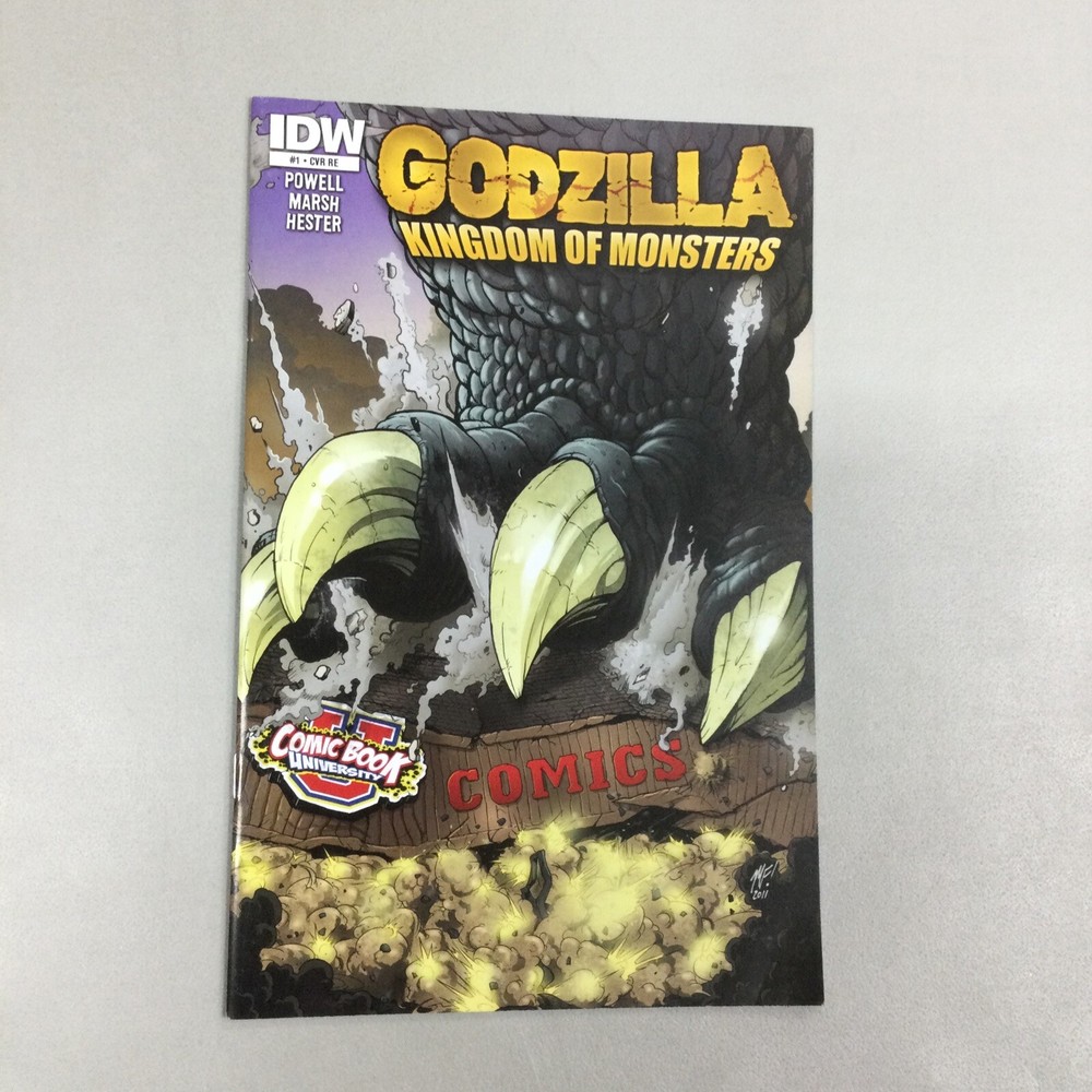 This listing is for the Godzilla Kingdom of Monsters #1 Retailer comic in the pictures. This has creases, scuffing, and other imperfections. I am not a grader please see pictures for condition. This comes in a bag and board.
