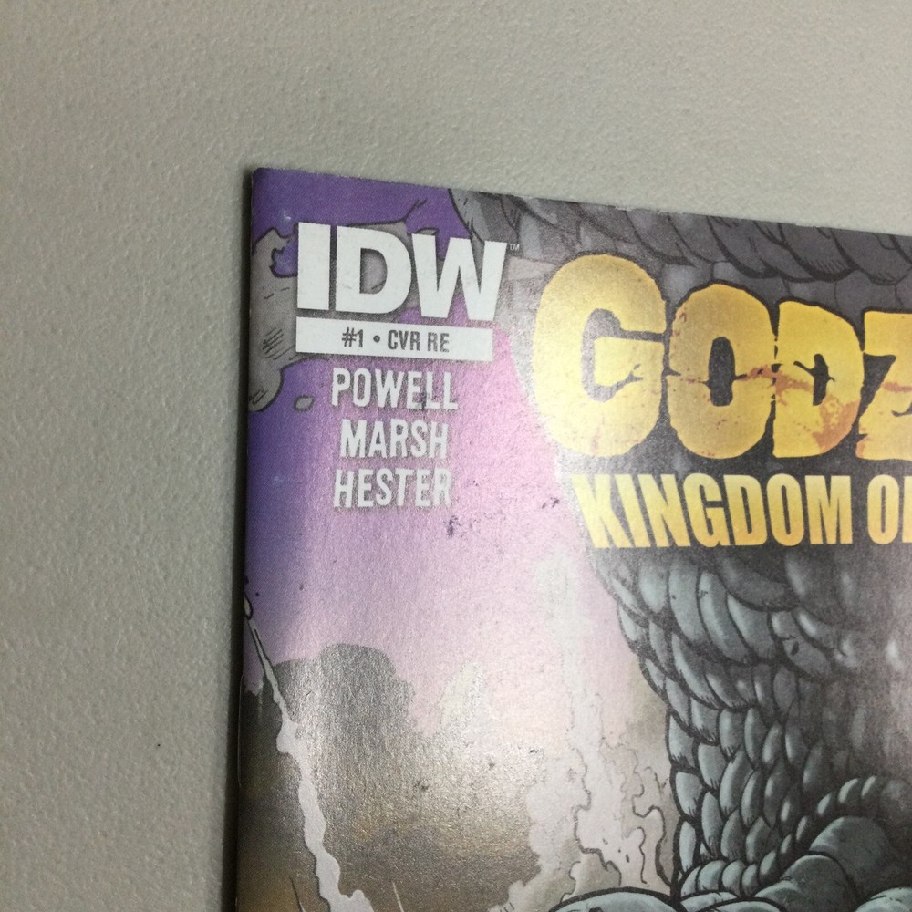 This listing is for the Godzilla Kingdom of Monsters #1 Retailer comic in the pictures. This has creases, scuffing, corner bumps, and other imperfections. I am not a grader please see pictures for condition. This comes in a bag and board.