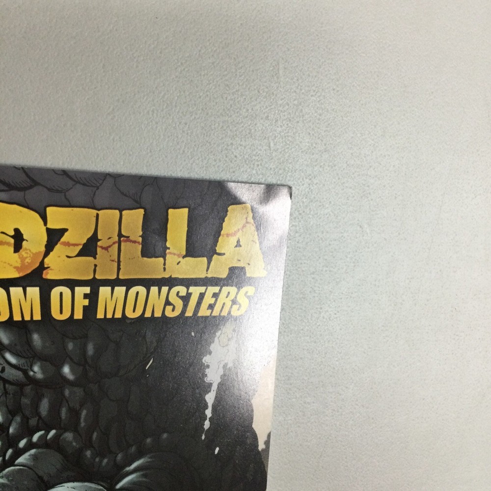 This listing is for the Godzilla Kingdom of Monsters #1 Retailer comic in the pictures. This has corner creases and other imperfections. I am not a grader please see pictures for condition. This comes in a bag and board.