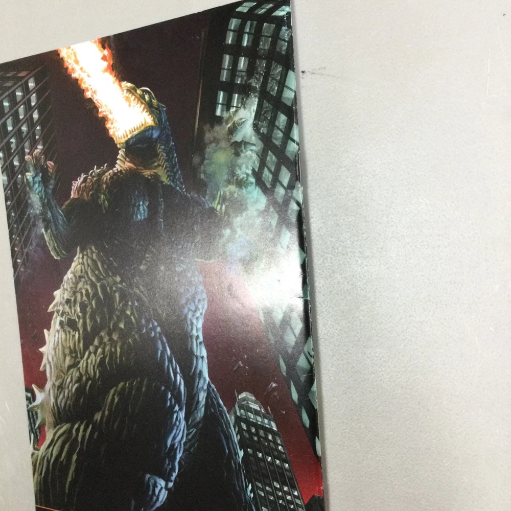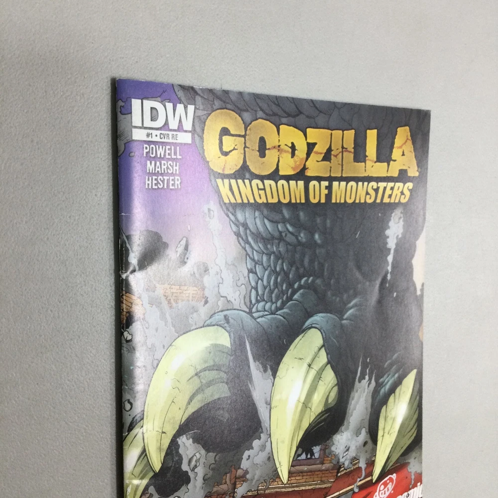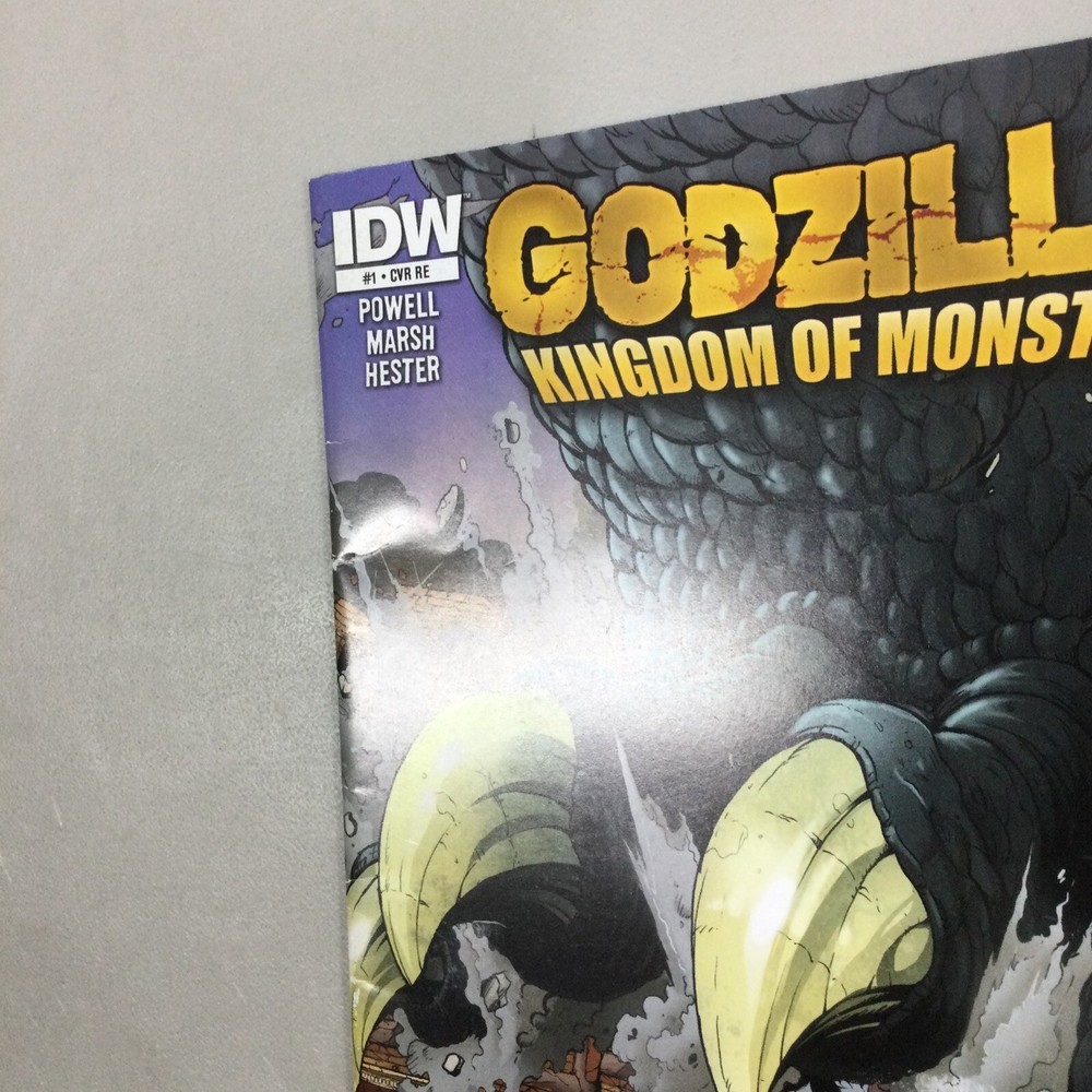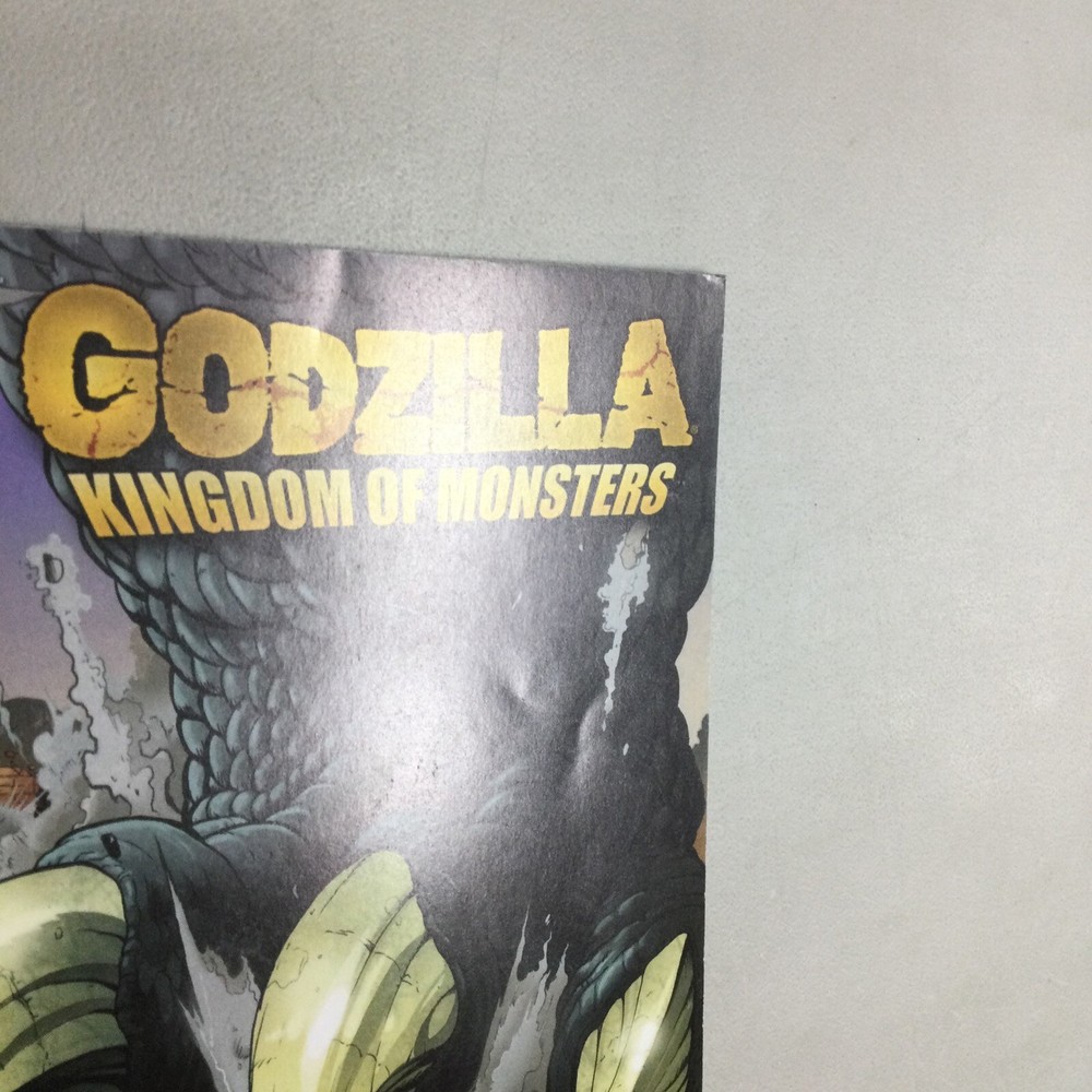 This listing is for the Godzilla Kingdom of Monsters #1 Retailer comic in the pictures. This has spine ticks, creases, scuffing, dents, and other imperfections. I am not a grader please see pictures for condition. This comes in a bag and board.