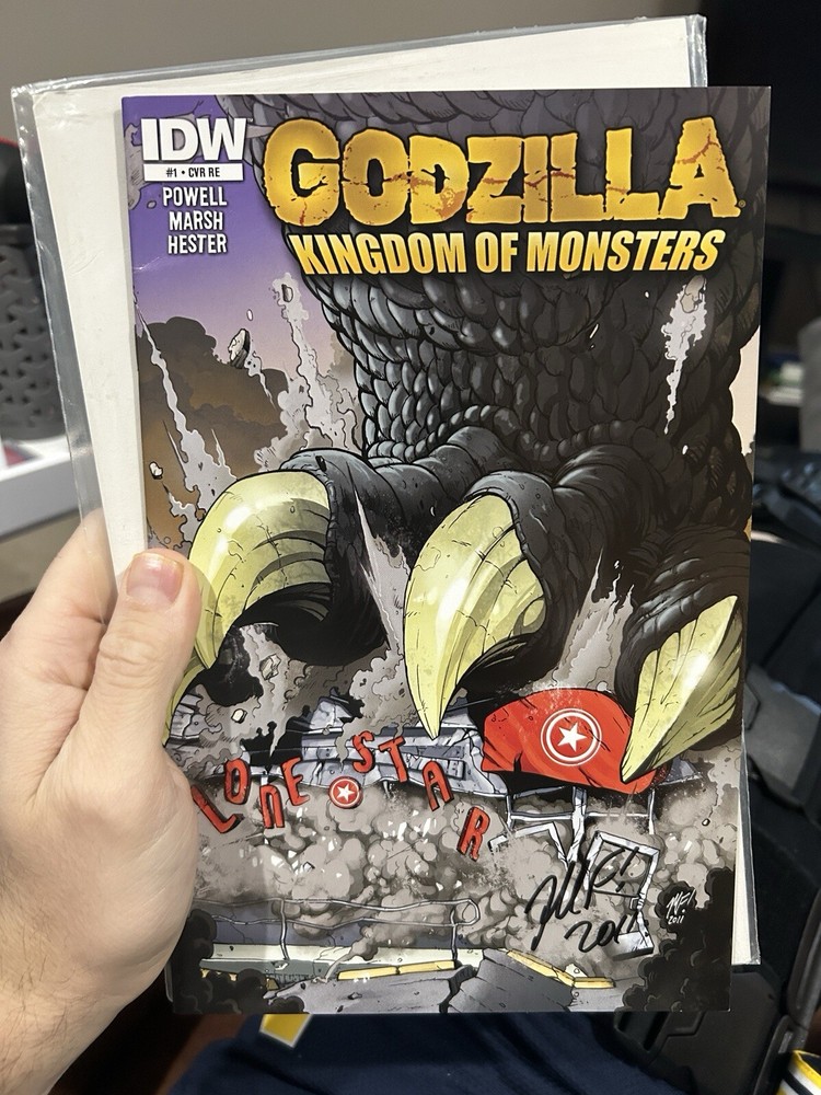 This Godzilla: Kingdom of Monsters comic book features the iconic monster in a variant cover with the laughing ogre. The issue number is 1 and it is part of the US Comics tradition series. Published by IDW, this comic book is a must-have for fans of the monster genre and collectors alike. The main character is Godzilla and it is categorized under Collectibles, Comic Books & Memorabilia, Comics, and Comics & Graphic Novels.