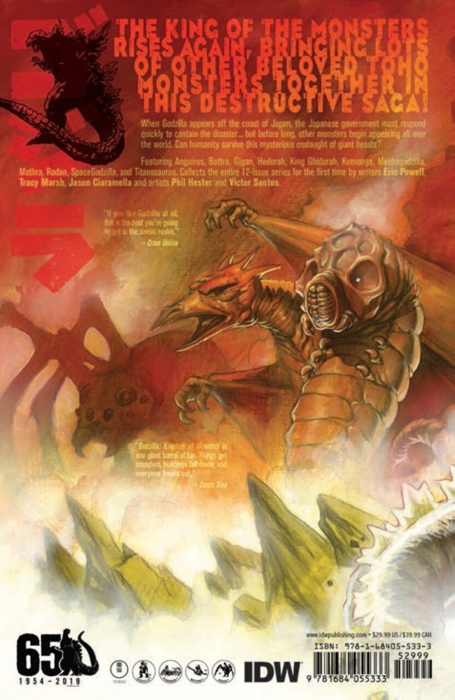 Godzilla Kingdom Of The Monsters (NM) July `19. 1st printing. Collects Godzilla: Kingdom of Monsters TPB (2011-2012 IDW) Vol. 1-3. Written by Eric Powell, Tracy Marsh, and Jason Ciaramella. Art by Phil Hester and Victor Santo. Cover by Eric Powell. The King of the Monsters rises again, and he's bringing lots of other beloved Toho monsters with him in one destructive saga! When Godzilla appears off the coast of Japan, the Japanese government must respond quickly to contain the disaster... but before long, other monsters begin appearing all over the world. Can humanity survive this mysterious onslaught of giant beasts? Featuring Anguirus, Battra, Destroyah, Gigan, Hedorah, King Ghidorah, Kumonga, Mechagodzilla, Mothra, Rodan, Spacegodzilla, and Titanosaurus. Collects the entire 12-issue series in one volume for the first time. Softcover, 304 pages, full color. Thank you for choosing to shop here at The Comic Book Circus. We enjoy good communications with our customers, and provide a fast and friendly service. With over twenty years trading in the comics industry you can be sure of a first class service. Please look at the other books on the C.B.C. shop, we are constantly expanding both the range and depth of our stock. All books will be posted securely bagged and boarded by the Royal Mail. International buyers, Books will be shipped Air Mail Tracked (Printed Paper if required). From the mainstream to the obscure, we aim to make your shopping experience as straight forward and hassle free as possible. Happy Shopping! The Circus Crew