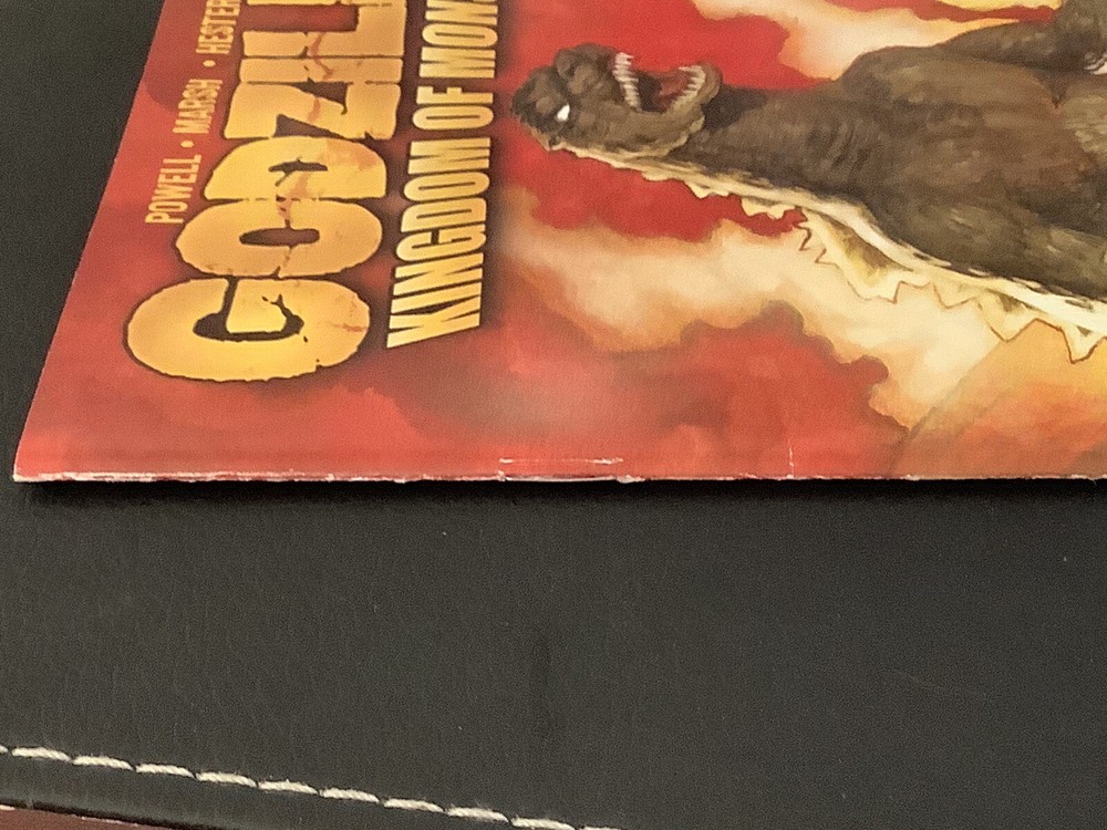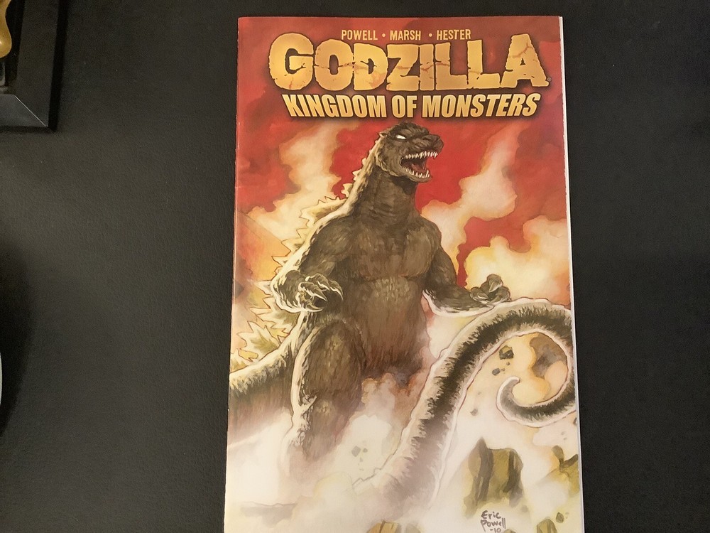 Experience the epic battle of Godzilla in this rare and highly collectible comic book from IDW Publishing. This issue features a gatefold wraparound cover variant type B by renowned artist Eric Powell, showcasing the King of the Monsters in all his glory. The comic is in very fine/near mint condition, boarded for protection.Follow the story of Godzilla: Kingdom of Monsters written by Phil Hester and Eric Powell as the Monsterverse comes to life in vibrant colors and stunning artwork. This single issue is a first printing and a must-have for fans and collectors alike, with no inscriptions or signs of wear. Don't miss your chance to own this gem from 2011. Selling comics.........This is the way