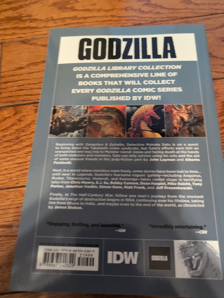 Godzilla Library Collection Vol. 1 I got this copy in this state, so I put it to sell. Please check the pictures before you purchase the book. I'll not take return on this item. The main damage is in the corner. Some pages are a little bit bend, but that doesn't affect the book at the moment of read it.