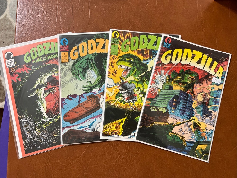 For you is this incredible trio Godzilla comics from Dark Horse Comics in 1987/88. Included are #1 x2 KEYS, #2 and #4 all are in VF to VF+ condition and higher. Bring offers as I will always negotiate. #1 KEY - Six-issue English translation of the manga series, The Return of Godzilla which was an adaptation of the 1984 Japanese film of the same name #1 KEY 1987, Art by Allen Moore, Charles Vess, Keith Giffen, Steve Bissette I am an experienced comic picker and not a grader so all items are sold AS-IS with NO GUARANTEE of condition or grade (unless slabbed and graded) I ship CONUS and do combine. Shop for what you want, buy and pay with shipping and I will refund any difference from a combined shipping cost once determined. I am not into holding your money or making money on shipping like other sellers. I have thousands of comics listed, yet to list and on the way so come back often, save/follow my page, bid and buy with confidence and thank you for looking!