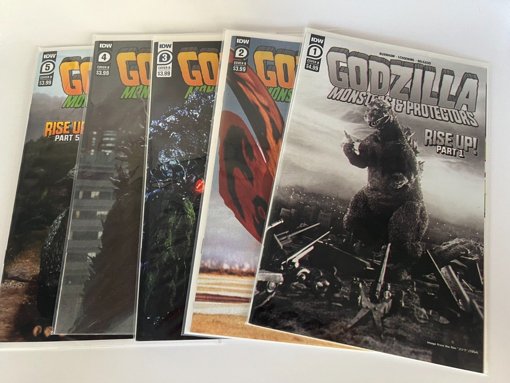 All comics are NM and never read. Complete Set of Godzilla: Monsters & Protectors , all cover B, which are photo covers! All comics are bagged, boarded and shipped securely using a Gemini Comic Mailer. Additional books ship for just $1!