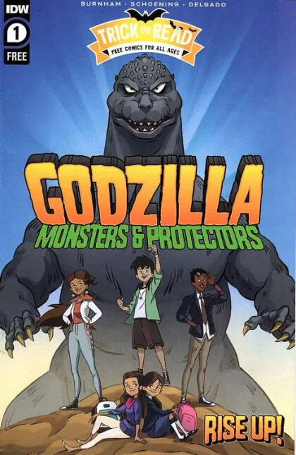 Godzilla: Monsters & Protectors (1D) Dan Schoening Godzilla roars back into comics! Â Â "Rise Up!" Part 1: When a coldly single-minded businessman uses an untested element to create clean energy for a profit, he inadvertently awakens the beast from the deep--Godzilla! Sensing the harm the new energy poses to the planet, Godzilla attacks the heart of the problem--humankind! It will be up to three intrepid middle-school students--with a little magic help from Infant Island--to show Godzilla that not all humans are bad... and that there is still hope for Planet Earth. Reuniting the blockbuster creative team of writer Erik Burnham, artist Dan Schoening, and colorist Luis Antonio Delgado (Ghostbusters), Godzilla: Monsters & Protectors promises to romp and stomp fans--old and new--of the greatest kaiju ever like never before!