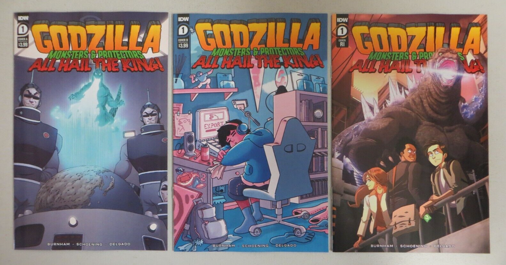 Godzilla Monsters & Protectors All Hail The King #1 Regular Covers A & B & 1:10 Incentive Variant Published by IDW Publishing Written by Chris Burnham Art by Dan Schoening Covers by Dan Schoening (A), Andrea Bell (B) and John Yurcaba (1:10) It’s been a year, and to Cedric’s dismay, there have been no more Godzilla sightings. Sure, that means no destruction, but it was also his vlog’s most popular series of videos. He needs new content! His views are dropping, and he’s running out of ideas. He’s being called out for lying by cyberbullies Dragon, who is trying to see if Cedric really has the Godzilla chops, and Karen Higa, who has her own agenda. There’s more going on beneath the surface, but will Cedric find out what before something deadlier than Godzilla rears its head? Books in this lot are estimated to be in VF/NM condition. Please see pictures. Books are stored and shipped bagged and boarded. When applicable books are shipped using a Gemini style mailer. We combine shipping! Please message us with your request! Please check out our other items for sale here: https://www.ebay.com/str/thecomicbookboxny Comic Box is a brick and mortar comics and collectibles store located in Massapequa, NY. We’re always buying new collections and new books are on the shelves every Tuesday and Wednesday! If you’re in the area please stop by and check us out! We appreciate all your support! Thanks for looking!