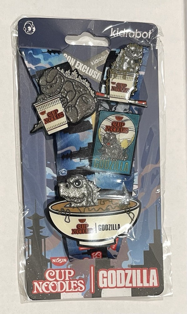 The Godzilla Nissin Cup Noodle Limited - 2022 NY Con Exclusive Lanyard & Pin Set is a highly sought-after collectible item featuring a life-size action figure of Godzilla. This limited edition set was released exclusively at the 2022 New York Comic Con, making it a unique and special addition to any action figure collection. With the collaboration between KitRobot and Nissin Cup Noodle, fans of Godzilla and pop culture memorabilia will appreciate this special release.