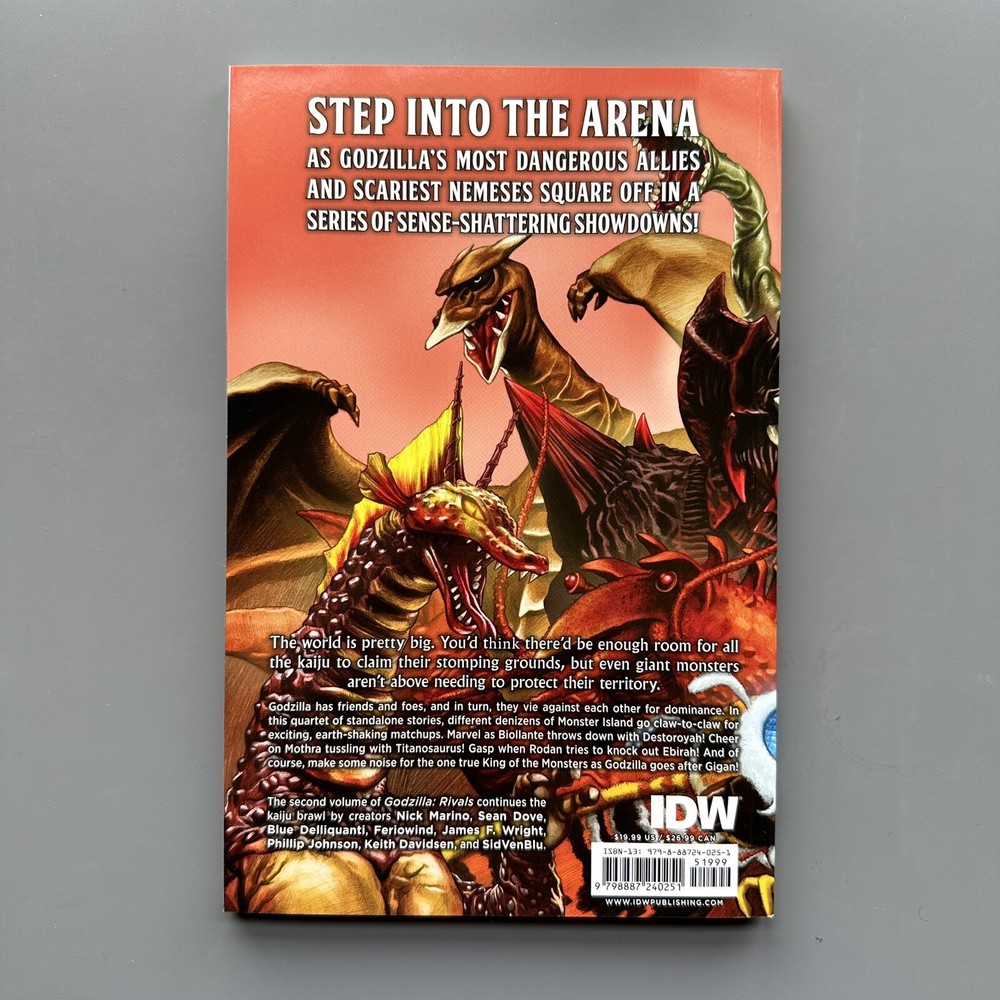 Godzilla Rivals Round Two TPB NEW IDW Marino Johnson Paperback GN Step into the arena as Godzilla’s most dangerous allies and scariest nemeses square off in a series of sense-shattering showdowns! The world is pretty big. You’d think there’d be enough room for all the kaiju to claim their stomping grounds, but even giant monsters aren’t above needing to protect their territory. Godzilla has friends and foes, and in turn, they vie against each other for dominance. In this quartet of standalone stories, different denizens of Monster Island go claw-to-claw for exciting, earth-shaking matchups. Marvel as Biollante throws down with Destroyah! Cheer on Mothra tussling with Titanosaurus! Gasp when Rodan tries to knock out Ebirah! And of course, make some noise for the one true King of Monsters as Godzilla goes after Gigan!The second volume of Godzilla: Rivals continues the kaiju brawl by creators Nick Marino, Sean Dove, Blue Delliquanti, Feriowind, James F. Wright, Phillip Johnson, Keith Davidsen, and SidVenBlu. About this book Step into the arena as Godzilla’s most dangerous allies and scariest nemeses square off in a series of sense-shattering showdowns! The world is pretty big. You’d think there’d be enough room for all the kaiju to claim their stomping grounds, but even giant monsters aren’t above needing to protect their territory. Godzilla has friends and foes, and in turn, they vie against each other for dominance. In this quartet of standalone stories, different denizens of Monster Island go claw-to-claw for exciting, earth-shaking matchups. Marvel as Biollante throws down with Destroyah! Cheer on Mothra tussling with Titanosaurus! Gasp when Rodan tries to knock out Ebirah! And of course, make some noise for the one true King of Monsters as Godzilla goes after Gigan! The second volume of Godzilla: Rivals continues the kaiju brawl by creators Nick Marino, Sean Dove, Blue Delliquanti, Feriowind, James F. Wright, Phillip Johnson, Keith Davidsen, and SidVenBlu. Buy It Now Browse The Store Watch This Item Frequently asked questions How are orders shipped? Orders are shipped via USPS Media Mail to keep shipping costs as low as possible. In stock books will usually ship within 1 business day (so Monday if your order is placed Fri-Sun). Special order books have a slightly longer handling time and may take up to a week to ship. Preorder books usually ship a few days before release to try and land as close as possible to actual release date. How do you pack books? For single issues or trade paperbacks, books will be secured and wrapped in a Gemini Flash Mailer. For multi-book orders or larger TPBs or hardcovers, books will be packed tightly with packing paper and bubble wrap as necessary in a sturdy cardboard box. Check out my feedback for proof, because I take pride in getting your books to you in good shape! Do you offer combined shipping? Yes! Most listings should calculate the combined shipping cost automatically if you add more than one item to your cart. If they don't for whatever reason, I'll automatically refund the overage in shipping cost after the order is placed. If I don't see a book I'm looking for, can you special order it? I'd love to try! Message me via eBay and I can check with my distributors to see if it's available and custom listing for you. I'm adding more new, used, and preorder graphic novels every day. Stay up to date on new arrivals and special discounts by saving my store page! Powered by