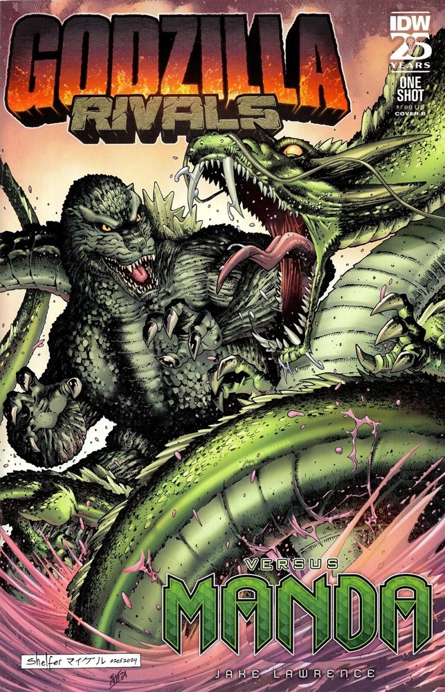 GODZILLA RIVALS VS MANDA #1 CVR B SHELFER IDW (W/A) Jake Lawrence (CA) Michael Shelfer Late into the night, the crew of a small fishing trawler off the coast of Australia is keeping busy by telling stories of the sea. Little do they know, they're moments away from happening upon a mysterious shipwreck... and the fearsome sea dragon Manda going toe to toe with Godzilla in the middle of the most brutal ocean brawl any sailor has ever seen. Can this small crew make it back to shore safely in the midst of this all-out kaiju battle? Join Jake Lawrence (Teen Dog, A Nice Long Walk) on a thrilling adventure on the high seas to find out! Possible light wear Buying multiple items? Be sure to "Request total from seller" from your cart before paying to receive an adjusted invoice with reduced total S&H! Powered by SixBit's eCommerce Solution
