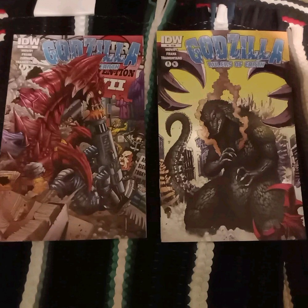 Godzilla Rulers Of Earth, 1-6, and issue 8. Great start to a collection. These comics are tight. Awesome Art and great story line. By Mowry, Frank, Tramontano, Pattison.