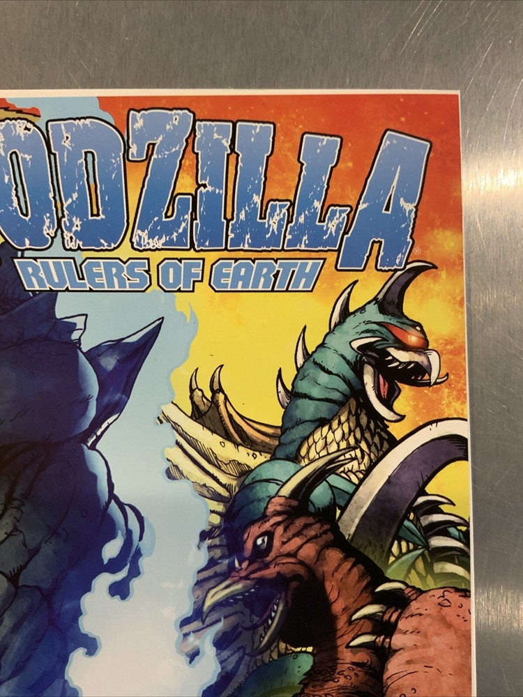 Explore the world of Godzilla through this exciting comic book series, featuring issue number one of "Godzilla: Rulers of Earth". Immerse yourself in the thrilling adventures of the legendary monster as he battles against his enemies in the court of the king. This single unit comic book, published by IDW Publishing in 2013, is a must-have for fans of the Godzilla universe. With cover art by Matt Frank and a storyline written by Chris Mowry and illustrated by Matt Frank, this comic book is a true gem for collectors and enthusiasts alike. The comic book is a part of the modern age era (1992-now) and falls under the categories of collectibles, comic books and memorabilia, and comics and graphic novels. Get your hands on this exciting piece of Godzilla history today!