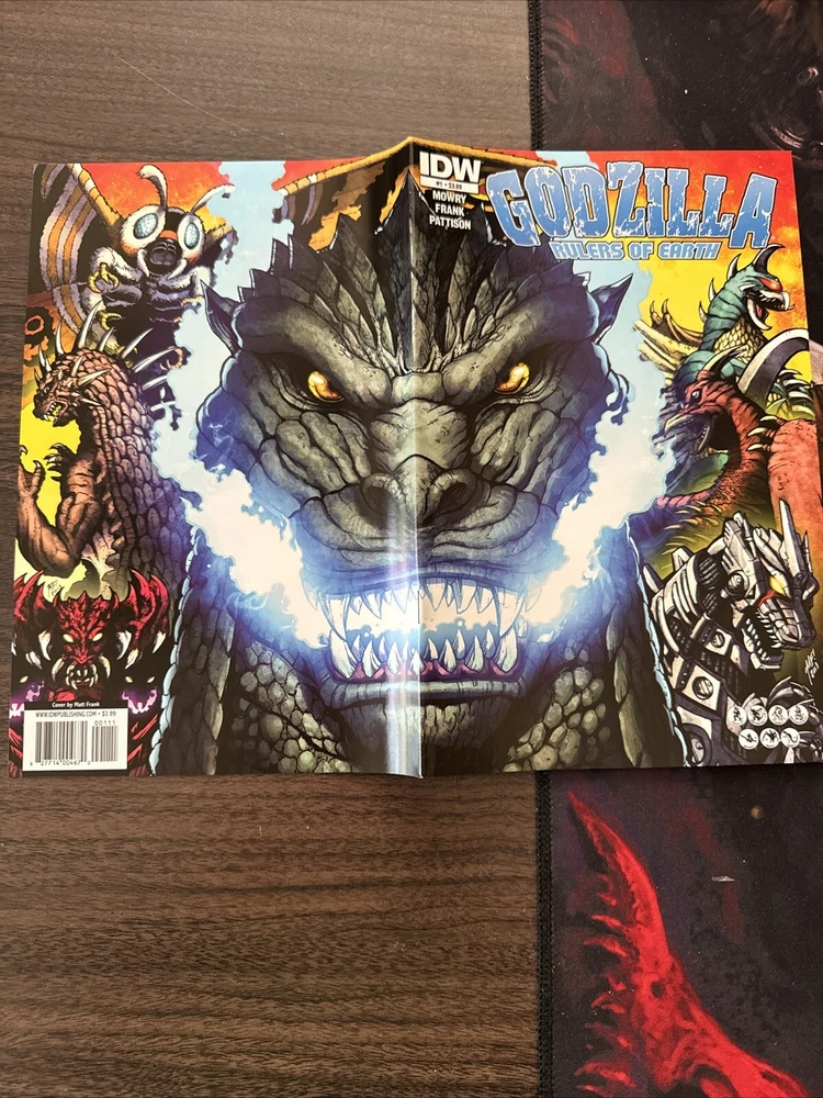 Explore the world of Godzilla with this exciting comic book, featuring the iconic character in his battle against the evil Dracula. Written by Chris Mowry and illustrated by Matt Frank, this comic is a must-have for fans of the Godzilla franchise. The cover art by Matt Frank is stunning, depicting the battle between the two legendary monsters. This single unit comic book is from the modern age era (1992-now) and is part of the US Comics tradition. It is published by IDW Publishing and is the first issue in the Godzilla: Rulers of Earth series. The comic book is classified under the categories of Collectibles, Comic Books & Memorabilia, Comics, and Comics & Graphic Novels. In F-VF condition. Please see all pictures before purchase. Comic sold as is and will be shipped securely bagged and board between cardboard. Any questions please ask. All sales final.
