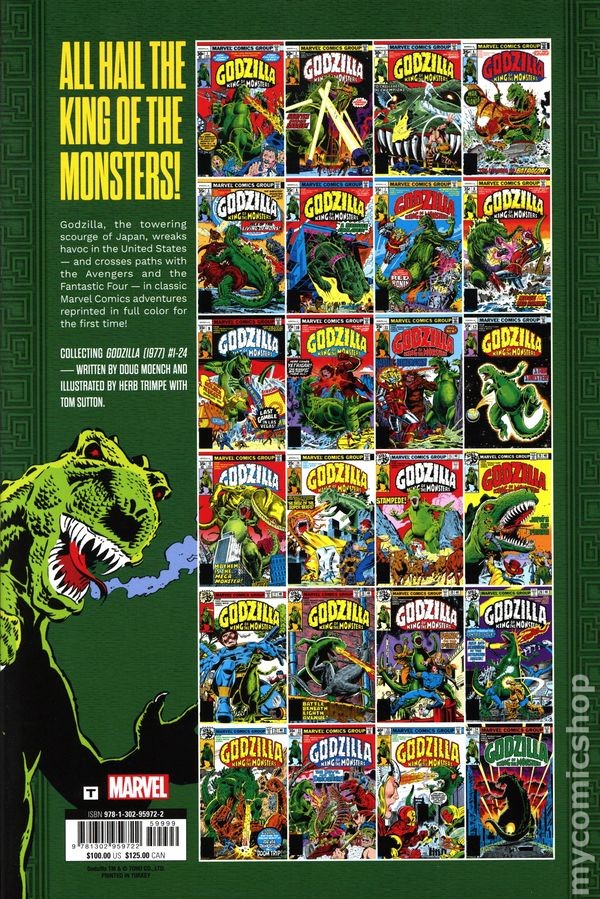 Menu Categories Featured Comics New Comics Comic Book Value Packs Key Comics & First Appearances Pre-Code Horror Comics Good Girl Art Comics Promotional Comics Comics Pre-1940 Comics 1940s Comics 1950s Comics 1960s Comics 1970s Comics 1980s Comics 1990s Comics 2000s Comics 2010-Curent Other Comics Graphic Novels, Books Fanzines Vintage Paperbacks Pulps and Digests Men's Adventure Non-comic Magazines Godzilla The Original Marvel Years Omnibus HC 1C-1ST NM 2024 Stock Image Grade NM Year 2024 Publisher Marvel Description Godzilla (1977-1979 Marvel) #4 Cover (By Herb Trimpe) - 1st printing 1st printing. Collects Godzilla (1977-1979 Marvel) #1-24. Written by Doug Moench. Art by Herb Trimpe, Tim Sutton, Jim Mooney, Tony DeZuniga, Klaus Janson, Fred Kida, Dan Green, Jack Abel, Frank Giacoia, and George Tuska. Cover by Herb Trimpe. Godzilla, the towering scourge of Tokyo, rises from the depths in the United States - and the Marvel Universe! For two glorious years in the 1970s, Japan's greatest export was one of Marvel's biggest stars - marching across America and battling some of the best and brightest the House of Ideas had to offer, including the Fantastic Four, the Avengers, the Champions, Nick Fury and the mechanized monster fighter, Red Ronin! Godzilla goes west, travels through time to battle Devil Dinosaur and hosts one of Spider-Man's most gratuitous guest-shots ever - but when Godzilla is shrunk down to miniature size, the terrible titan proves it can still be a tiny terror! Plus: Aliens, mutants, mad scientists and epic kaiju clashes with Godzilla's fellow towering titans - including Batragon and Yetrigar! Hardcover, 8 1/2-in. x 11-in., 440 pages, full color. Rated T Stock images The images shown in this listing are stock images provided to help you identify the item, but do not show the specific item being offered, nor do they represent the grade and condition of the item being offered. Grading & Packing We take pride in our accurate, consistent grading. You can be confident in receiving a well-graded comic when ordering from us. We understand that condition is important to collectors. We pack your comics with professional care and high-quality packaging to insure your purchase reaches you safely. About Us We opened our first comic retail store in 1977 and operated a chain of eight comic book stores in the 80s, 90s, and 2000s before going online-only. We are the world's largest comic book seller and the biggest and most trusted comic seller on eBay with over 3.6 million comics sold. We Buy & Consign We buy tens of thousands of comics every month from collections large and small, old and new. We also accept consignments and will get your comics listed on eBay for you. Check out our website for more info. Copyright © 2025 MyComicShop & Lone Star Comics. All rights reserved.