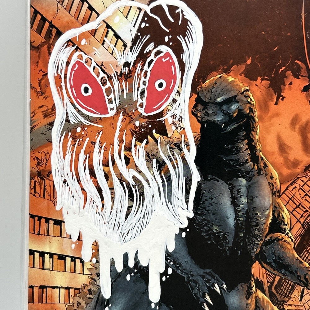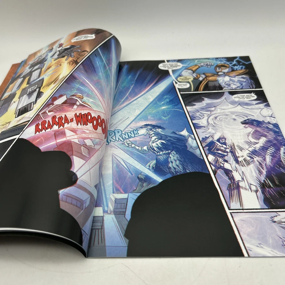 The product is a 2024 comic book titled "Godzilla VS Mighty Morphin Power Rangers #1 VIRGIN(RICH AYALA Remark Alien COA). It is a Virgin Variant featuring artwork by Rich Ayala with a Certificate of Authenticity (COA). The comic book includes characters such as Godzilla, and Power Rangers in a superhero team, set in the US Comics tradition. It is part of the series "Godzilla Vs. Mighty Morphin Power Rangers 11" and falls under genres like superheroes, action, and science fiction. Bin-9 E and P