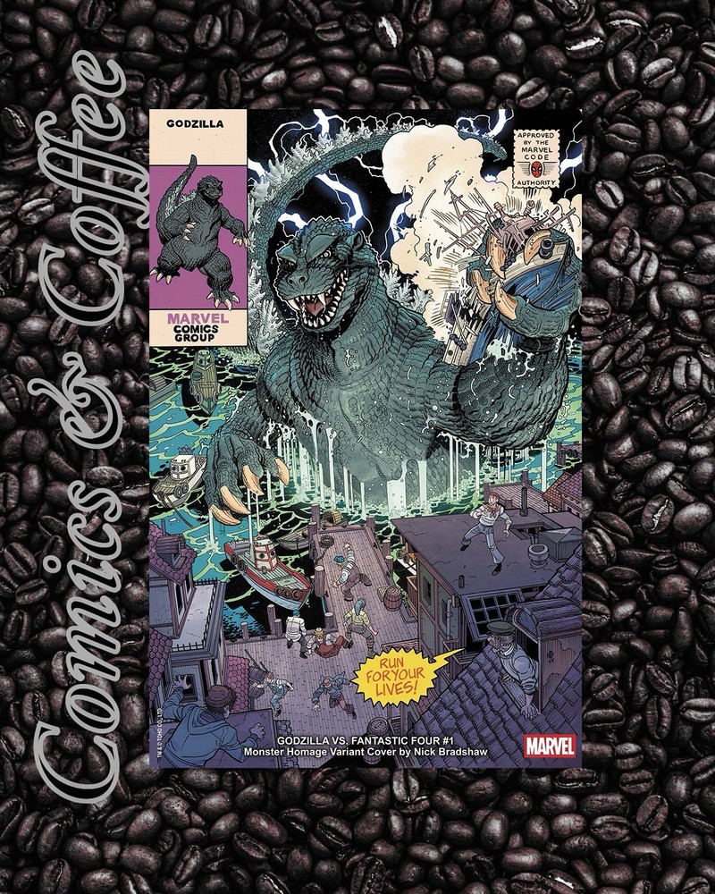 (W) Ryan North (A) John Romita Jr. (CA) Nick Bradshaw THE BATTLE OF THE CENTURY STARTS HERE! The start of six sensational, action-packed issues with MARVEL HEROES battling THE KING OF THE MONSTERS from its many different eras! How will GODZILLA'S lore mix with the MIGHT MARVEL UNIVERSE? Find out as history is twisted when icons like the FANTASTIC FOUR, SPIDER-MAN, HULK, X-MEN and THOR go face off against one of the greatest monsters of all time! This issue, witness a threat never before seen as KING GHIDORAH descends upon the Earth with the POWER COSMIC as GALACTUS' newest HERALD! Can the FANTASTIC FOUR stop him from destroying New York along with the rest of the planet? It's a CITY SMASHING SPECTACULAR as GODZILLA with the help of the SILVER SURFER join forces to stop the world from certain annihilation! A must for MARVEL and GODZILLA FANS! ROUND 1 IN A SERIES OF 6 ONE-SHOT THROWDOWNS! RATED T