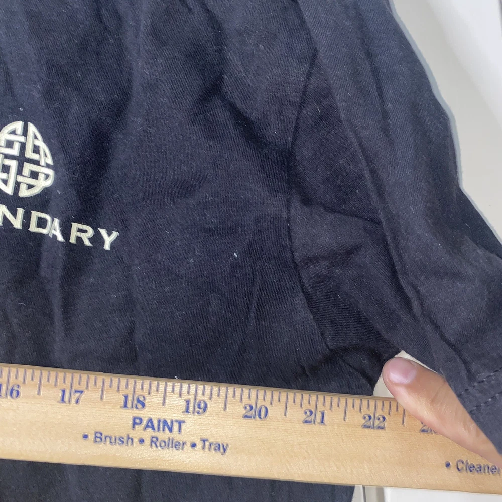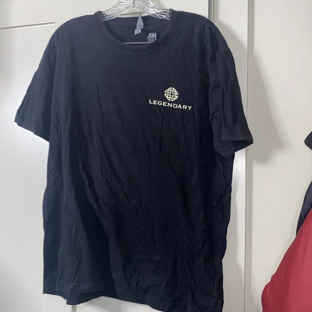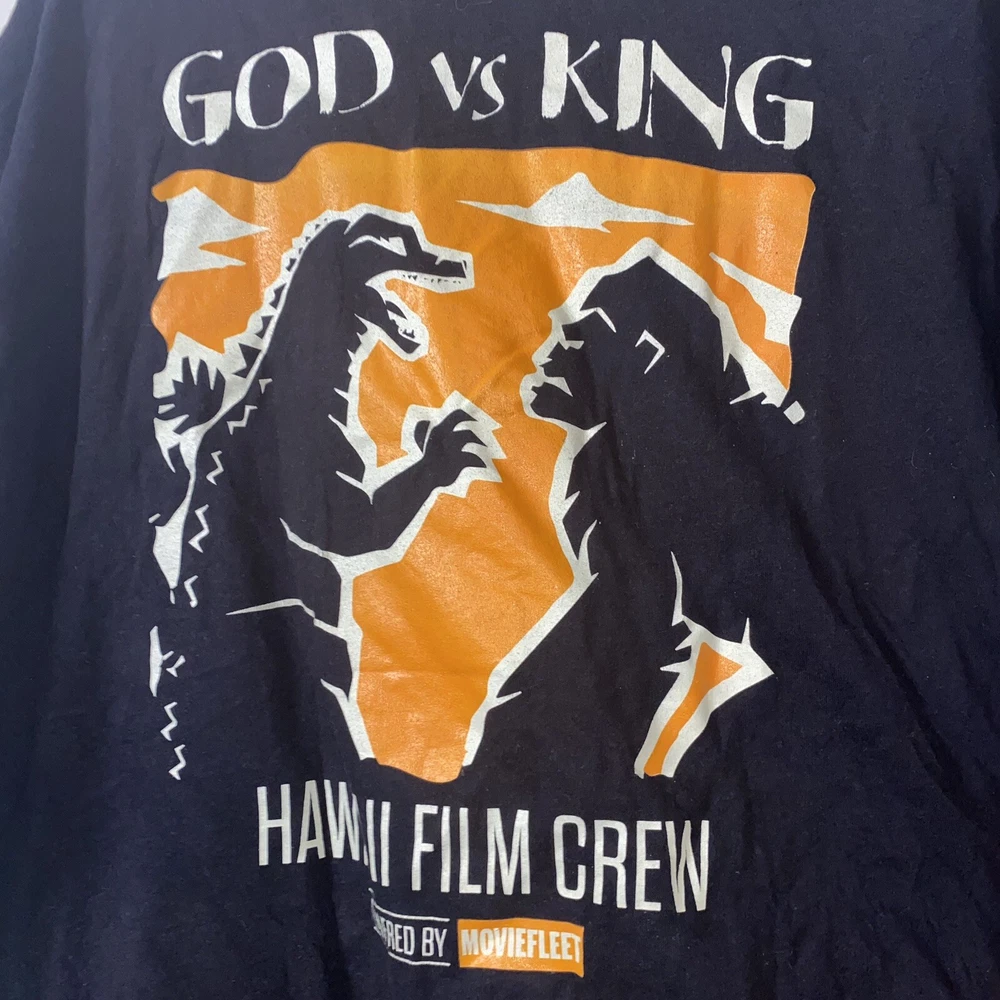 Showcase your love for the epic battle between Godzilla and King Kong with this black T-Shirt featuring an athletic fit and short sleeves. Made from 100% cotton, this graphic tee in size L has a solid pattern and is handmade in the United States. The shirt displays the featured graphics of the two movie monsters and is perfect for fans of movies, TV, anime, and comics. The unisex adult department T-Shirt has a regular size type and style, making it a great addition to your wardrobe. Whether you're a film crew member or a fan of the blockbuster movie, this Godzilla Vs King Kong T-Shirt is a must-have for any fan. Rare. Note discoloration on collar