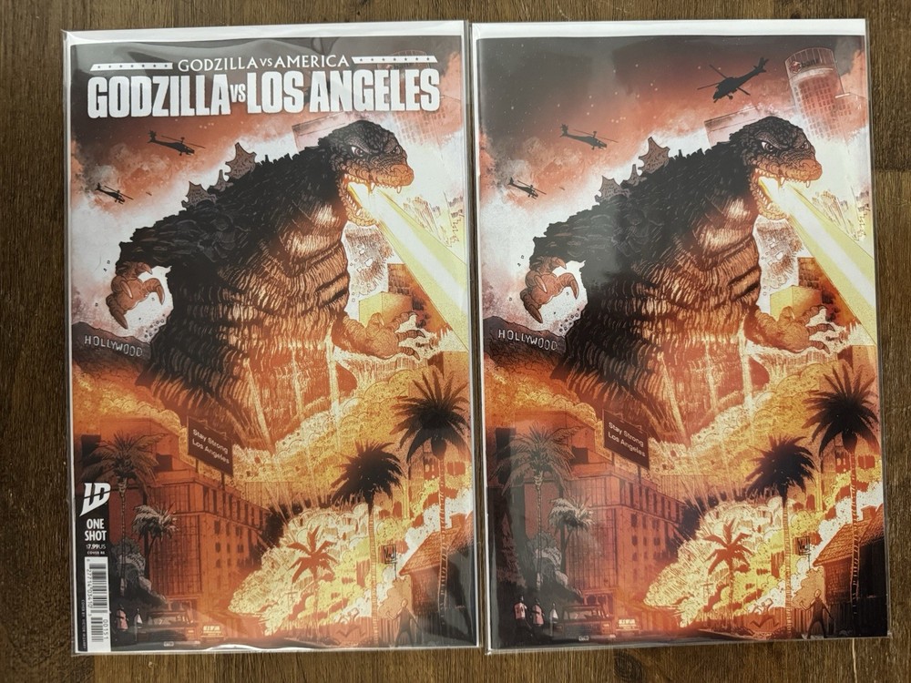 The Godzilla Vs Los Angeles Combo Pack 1 Trade/1 Non-Trade is a limited edition comic book featuring the iconic character Godzilla, written by Dave Baker, Gabriel Hardman, & J Gonzo and with exclusive cover art by Victor Irizarry. Published by IDW Publishing in 2025, this single issue comic is part of the Modern Age era, falling under the action genre. With a grade of 9.8 Near Mint/Mint and a limited run of 500 copies, this collectible item comes with a Certificate of Authenticity. This combo pack of 1 trade and 1 Non-Trade is a must-have for any Godzilla fan and comic book collector.