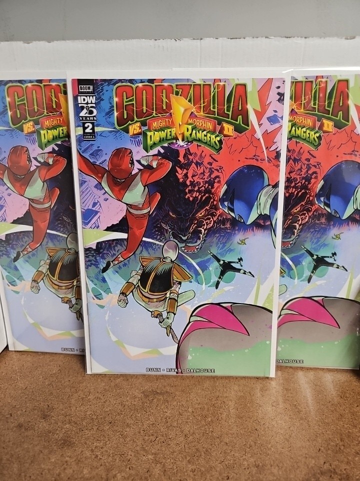 The product is a single issue comic book titled "Godzilla Vs. Mighty Morphin Power Rangers 2" published by IDW Publishing in 2024. The comic features characters Godzilla and the Mighty Morphin Power Rangers in a crossover storyline. It is part of the US Comics tradition and falls under the genres of superheroes, action, adventure, and science fiction. The creative team behind the comic includes writer Cullen Bunn, artist Baldemar Rivas, and colorist Andrew Dalhouse. This comic book is the second issue in the series.