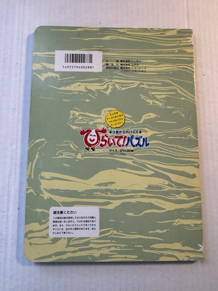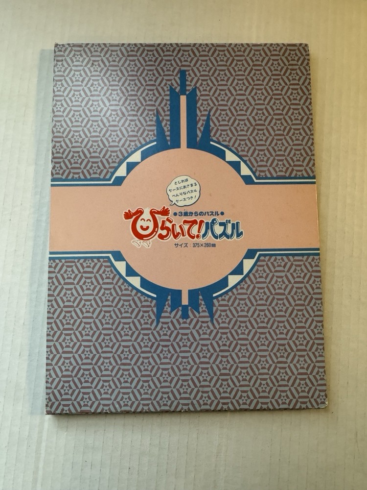 Slip cover is dirty but puzzle is in very good condition. Children’s style board puzzle, easier (fewer pieces) on the left than right....