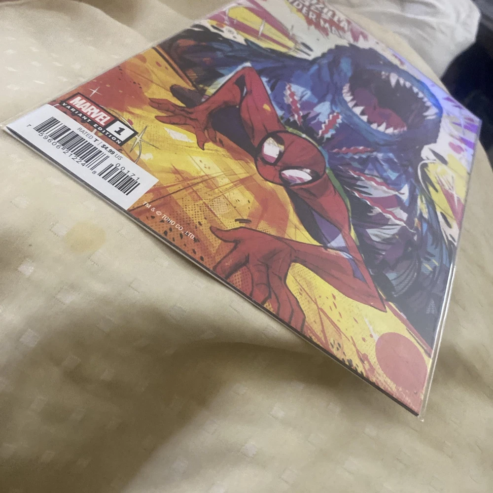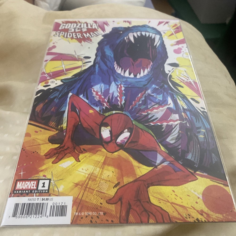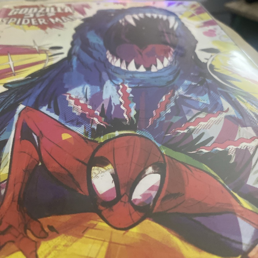 The product is a highly sought-after variant cover issue of Godzilla Vs Spider-Man #1, featuring artwork by Paco Diaz and published by Marvel Comics in 2025. This single issue comic book is a first printing from the Modern Age era, with a grade of 9.8 Near Mint/Mint condition. The cover showcases the iconic characters Godzilla and Spider-Man in a unique and eye-catching design, making it a valuable addition to any comic book collection for fans of both characters.