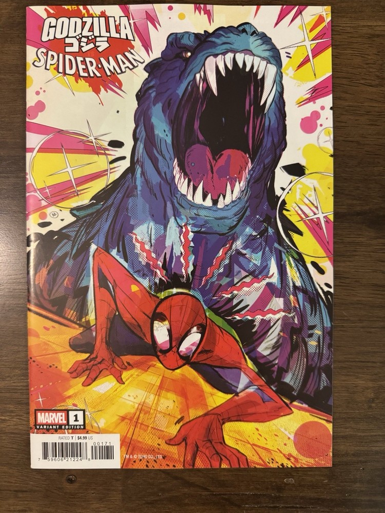 I know how to ship comics. New/unread. We combine shippings. Dive into the epic showdown between two iconic figures with "Godzilla Vs Spider-Man #1," featuring the Baldari variant cover. Published by Marvel Comics in 2025, this single issue comic book is a must-have for fans and collectors alike. The narrative, penned by Paco Diaz, promises action-packed pages and a compelling storyline set in the Modern Age of comics. Boasting a pristine 9.8 Near Mint/Mint grade, this first printing edition is a testament to high-quality storytelling and artwork. It's a celebration of the Spider-Man series, delivered in full color, and made in the United States. Whether you're a die-hard Marvel enthusiast or a dedicated collector of variant covers, this comic book stands as a remarkable addition to any collection.