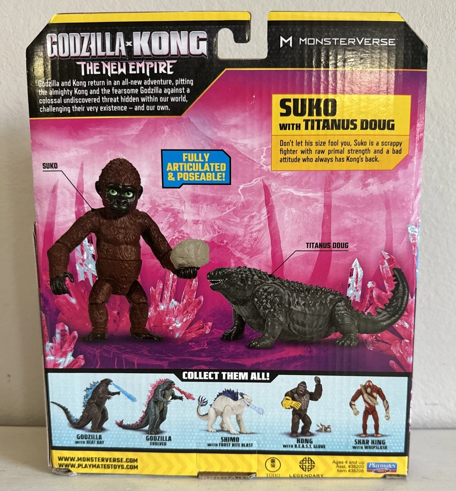 Introducing the Godzilla X Kong The New Empire Suko With Titanus Doug 4" Figure Playmates Toys, a must-have for fans of the Monsterverse. This action figure features intricate details and is made of high-quality plastic, making it durable and perfect for display. The figure is part of the 1:12 scale model, titled "Monsterverse Godzilla X Kong New Empire", and is an original licensed reproduction. The Godzilla X Kong The New Empire Suko With Titanus Doug 4" Figure Playmates Toys is perfect for collectors and fans alike, featuring the popular characters Suko, King Kong, Doug with Titanus Doug, and Titanus Doug. The action figure is designed for children aged 4+ and is part of the TV show "Godzilla X Kong". This item is a great addition to any collection and is sure to impress. § I am a trusted long-time seller with excellent feedback. § Ships quickly! § All item brands are Authentic or your money back! § I stand by every one of my items and will do what it takes to make your shopping experience right! § I offer No Hassle returns and fast shipping! § Packaging counts and all items are neatly packaged and secured to ensure your purchase arrives to you just as you expected it. § Great brands at great discounts. New items are added daily. § Thank you for browsing my listings and your continued support.