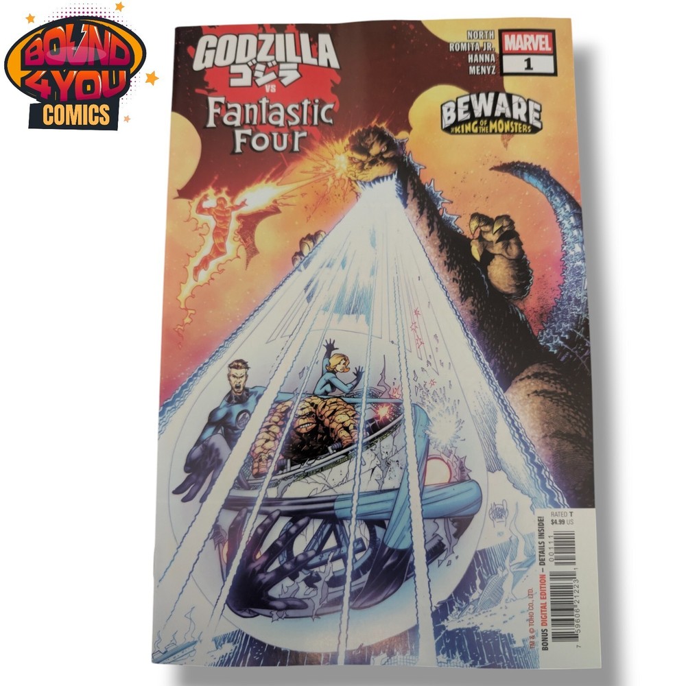 Godzilla vs. Fantastic Four #1 - Adam Kubert - Regular (2025) Item Description THE BATTLE OF THE CENTURY STARTS HERE! The start of six sensational, action-packed issues with MARVEL HEROES battling THE KING OF THE MONSTERS from its many different eras! How will GODZILLA'S lore mix with the MIGHT MARVEL UNIVERSE? Find out as history is twisted when icons like the FANTASTIC FOUR, SPIDER-MAN, HULK, X-MEN and THOR go face off against one of the greatest monsters of all time! This issue, witness a threat never before seen as KING GHIDORAH descends upon the Earth with the POWER COSMIC as GALACTUS' newest HERALD! Can the FANTASTIC FOUR stop him from destroying New York along with the rest of the planet? It's a CITY SMASHING SPECTACULAR as GODZILLA with the help of the SILVER SURFER join forces to stop the world from certain annihilation! A must for MARVEL and GODZILLA FANS! ROUND 1 IN A SERIES OF 6 ONE-SHOT THROWDOWNS! RATED T Grading We take pride in offering high-quality comic books, and each one you purchase from us will fall within the 9.2 to 9.6 range, unless otherwise stated. While we strive for accurate and consistent grading, please keep in mind that it can be a bit subjective. This is why we don't advertise specific grades. We're always happy to answer any questions you might have about a specific book's condition or provide additional photos to help you make an informed decision. Shipping Policy Domestic Shipping (within the United States): We offer a flat shipping rate for all comic books. All comics are carefully bagged and boarded to protect them during transit. We ship using Gemini Comic Mailers to ensure your comics arrive in pristine condition. Shipping for Graphic Novels, Trade Paperbacks, and Other Collectibles: Shipping costs for these items vary based on size, weight, and destination. The exact shipping cost will be calculated and displayed at checkout. Additional Information: We strive to ship all orders within 1-2 business days of receiving payment. You will receive a tracking number once your order has shipped. Please ensure your shipping address is correct to avoid any delays or delivery issues. If you have any questions about our shipping policy, please don't hesitate to contact us. Returns We want you to be completely satisfied with your purchase. If, for any reason, you are not happy with your item, we offer a hassle-free return policy: Eligibility: Returns are accepted within 30 days of the delivery date. Condition: Items must be returned in the same condition as they were received, including all original packaging and accessories. Refund Process: Once the returned item is received and inspected, a full refund will be issued to the original payment method. Please contact us before initiating a return so we can assist you with the process. We strive to provide excellent customer service and ensure a positive buying experience. If you have any questions or concerns about your order, please don't hesitate to reach out to us. About Us Bound 4 You Comics is more than just a comic shop ? it's a community hub where comic book lovers of all ages can gather, connect, and geek out! Whether you're a seasoned collector or just starting your journey, we've got something for everyone. Browse our latest releases, dive into our back issue overflowing with hidden gems, and explore our curated selection of graphic novels and manga. Thank you for your interest!