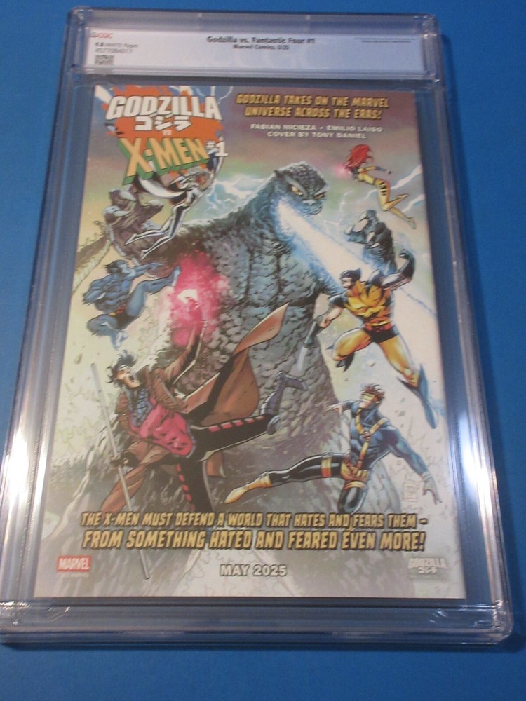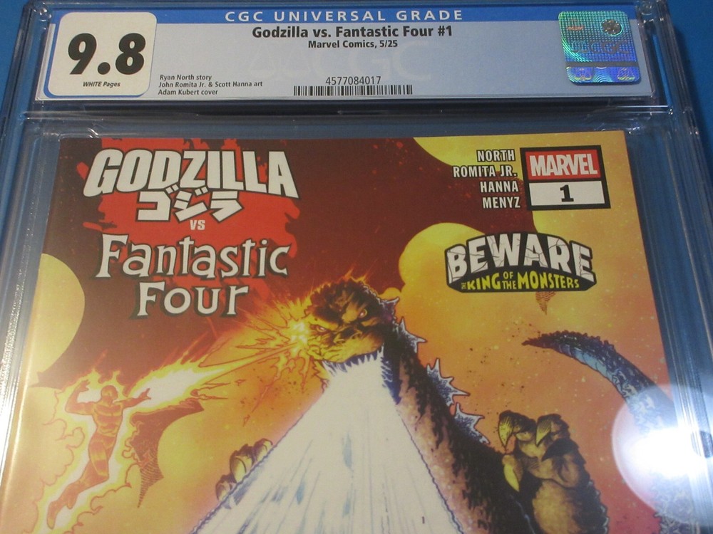 This auction is for Godzilla vs Fantastic Four #1 variant in CGC 9.8 with a new case condition. This week we are selling an incredible collection including Amazing Spider-man , Silver Surfer, Dr. Strange, X-men, Iron Man, Hulk, Fantastic Four, Black Panther, Batman, CGC books and many other 1st appearance key issues. You are sure to find something you are looking for this week. Bonus Offer! Win 2 or more comics and get a bonus comics (10 dollar minimum) and an upgraded bonus if you win 10 auctions. Our Shipping rates are: USA: 5 dollar flat rate shipping on raw comics with no limit. Canada: 16 Dollars for the 1st comic and 1.50 each after that. International: 18 dollars for the 1st comic and 1.50 each after that. CGC books are 11.99 flat rate shipping for up to 20 CGC slabs in the USA, 24 bucks and 12 combined for Canada and 28 bucks and 14 combined for international. Australia is more. Feel free to ask questions. I guarantee superfast Domestic shipping! ...to open their eyes...that they may receive forgiveness of sins and a place among those who are sanctified by faith in me. Acts 26:18