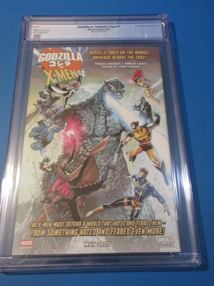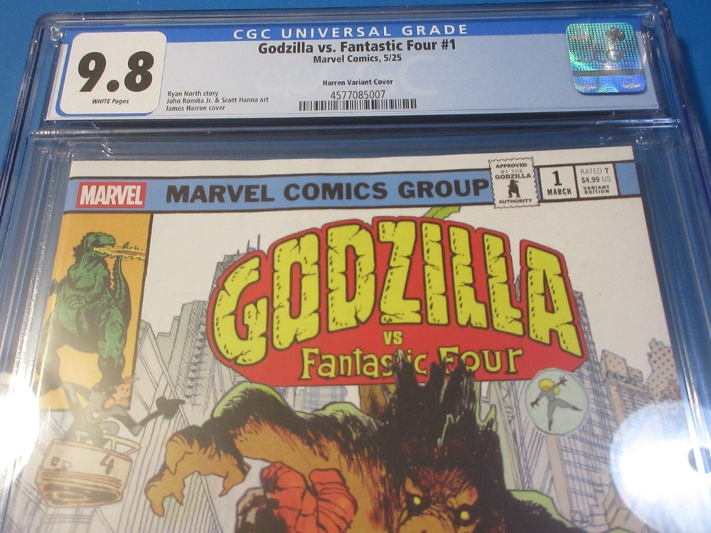 This auction is for Godzilla vs Fantastic Four #1 variant in CGC 9.8 with a brand new case . This week we are selling an incredible collection including Amazing Spider-man , Silver Surfer, Dr. Strange, X-men, Iron Man, Hulk, Fantastic Four, Black Panther, Batman, CGC books and many other 1st appearance key issues. You are sure to find something you are looking for this week. Bonus Offer! I will add a bonus comic book for every 10 auctions you pay for on the same invoice this week. Our Shipping rates are: USA: 5 dollars for single comics with no limit, multiple comic lots have a charge and additional combined lots are half price. Canada: 16 Dollars for the 1st comic and 1.50 each after that. International: 18 dollars for the 1st comic and 1.50 each after that. CGC books are 11.99 flat rate for up to 20 slabs in the USA, 24 bucks and 12 combined for Canada and 28 bucks and 14 combined for international. Feel free to ask questions. I guarantee superfast Domestic shipping! ...to open their eyes...that they may receive forgiveness of sins and a place among those who are sanctified by faith in me. Acts 26:18