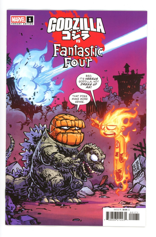 BRAND NEW Godzilla vs. Fantastic Four #1 - Skottie Young Variant MARVEL’S GREATEST HEROES MUST FIGHT GODZILLA FROM ACROSS THE ERAS! THE BATTLE OF THE CENTURY STARTS HERE! The start of six sensational, action-packed issues with MARVEL HEROES battling THE KING OF THE MONSTERS from its many different eras! How will GODZILLA’S lore mix with the MIGHT MARVEL UNIVERSE? Find out as history is twisted when icons like the FANTASTIC FOUR, SPIDER-MAN, HULK, X-MEN and THOR go face off against one of the greatest monsters of all time! This issue, witness a threat never before seen as KING GHIDORAH descends upon the Earth with the POWER COSMIC as GALACTUS’ newest HERALD! Can the FANTASTIC FOUR stop him from destroying New York along with the rest of the planet? It’s a CITY SMASHING SPECTACULAR as GODZILLA with the help of the SILVER SURFER join forces to stop the world from certain annihilation! A must for MARVEL and GODZILLA FANS! ROUND 1 IN A SERIES OF 6 ONE-SHOT THROWDOWNS! Comic · 32 pages · $4.99 Cover Date May 2025 UPC 75960621223100171 Fast shipping and protecting your AWESOME book are our specialty!! - All comics come with a NEW Bag and Board - Orders are shipped in a Gemini Flash Mailer or Similar with additional cardboard for protection. - Large orders will be shipped in a protective box. - Comics will be at least NM or better, unless stated. As collectors ourselves we will make sure we ship the best quality comics possible. - Many pictures are used to show the actual book you will receive. Please look closely at the pictures. The hi-def pictures will show any imperfections and the accuracy of the condition. - Combined shipping is offered. Please add as many comics to the cart as you desire. In the event there is a problem with the cart, do not worry. We will issue a refund for any over payment. - PLEASE CONTACT US if there is any problem. Thank you!