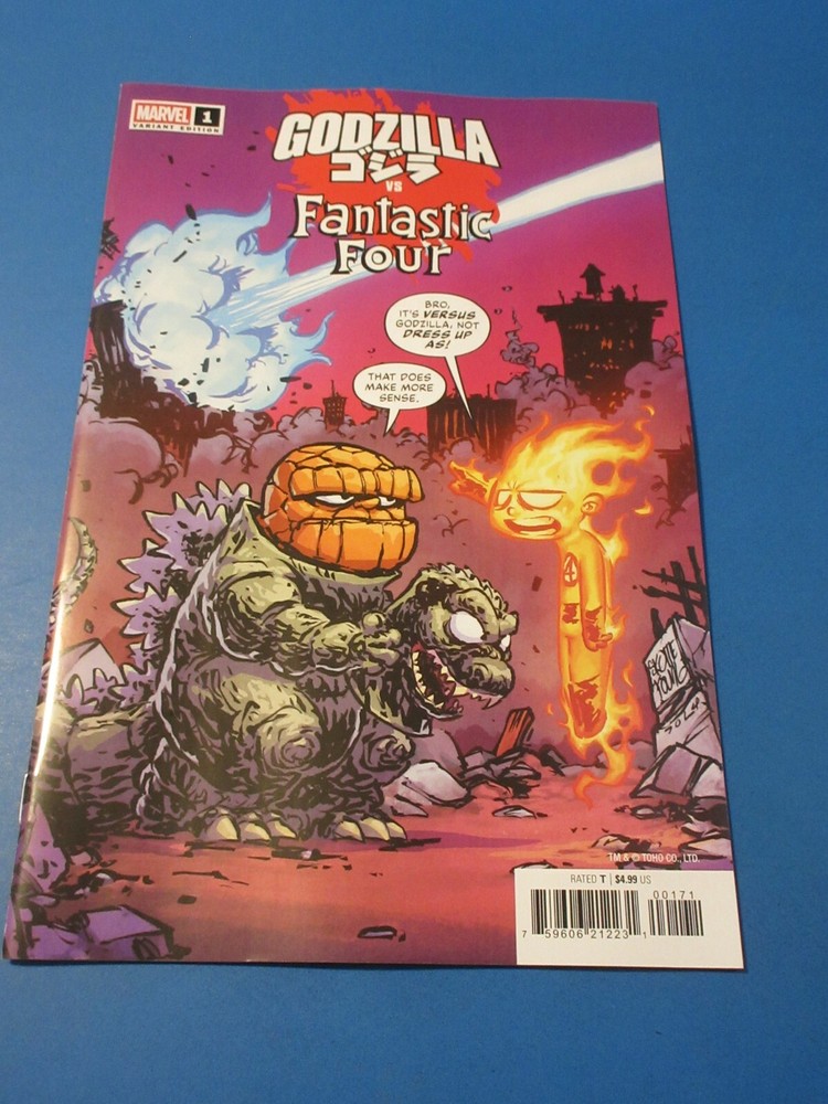 This auction is for Godzilla vs FF #1 variant in NM c ondition. This week we are selling a nice collection of Marvel A-Z followed by X-men, Spider-man related and Amazing Spider-man comics plus CGC books and many other 1st appearance key issues. You are sure to find something you are looking for this week. Bonus Offer! Win 2 or more comics (10 dollar minimum) and get a bonus comics and an upgraded bonus if you win 10 auctions. Our Shipping rates are: USA: 5 dollars flat rate for raw comics with no limit. Canada: 16 Dollars for the 1st comic and 1.50 each after that. International: 18 dollars for the 1st comic and 1.50 each after that. CGC books are 11.99 for the 1st and 5 each after that in the USA, 24 bucks and 12 combined for Canada and 28 bucks and 14 combined for international. Feel free to ask questions. I guarantee superfast Domestic shipping! "Christ Crucified" Nuff Said 1 Corinthians 1:23